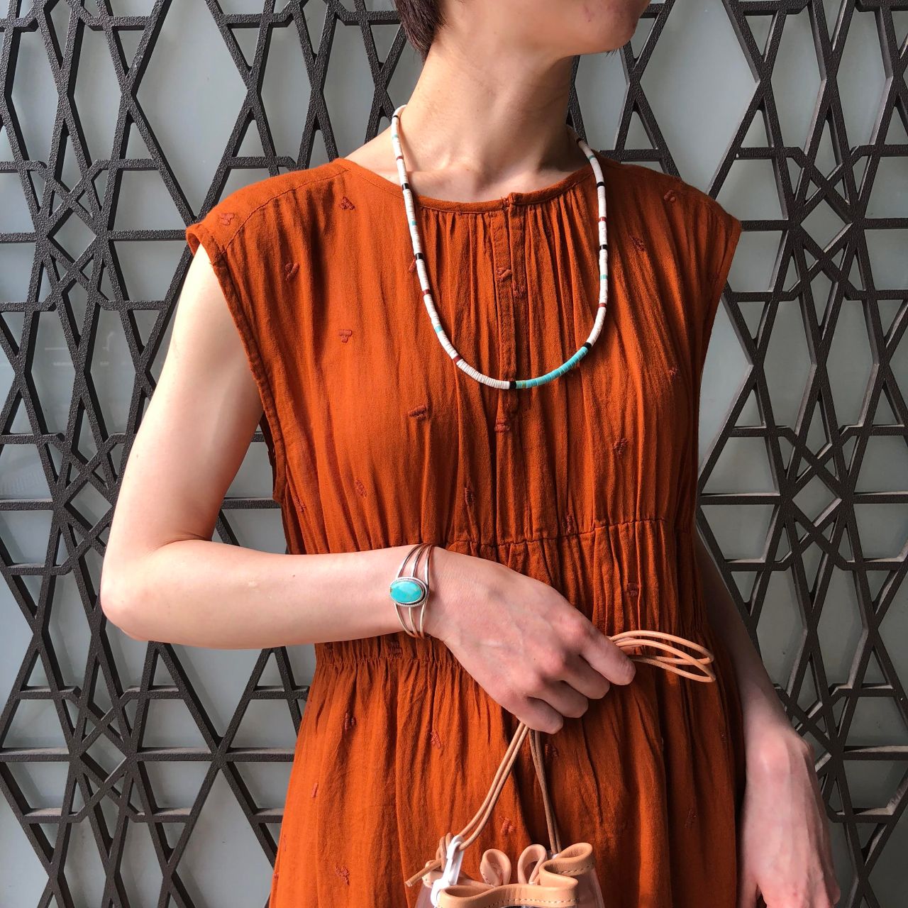 ワンピースに気負わずさらっと付けるのも素敵です。