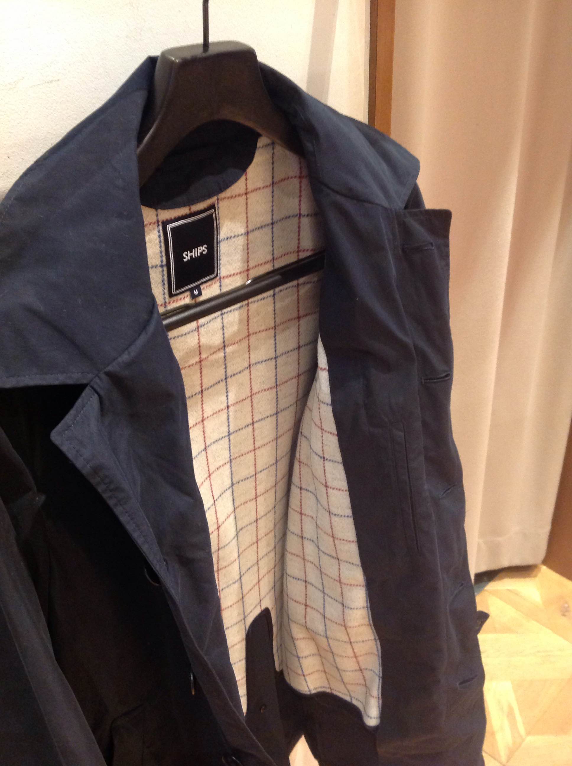 ネイビーはタッターソールのように線が配されたウィンドぺーン。 春先は前を開けて着る機会もあるので、チラッと見える裏地もお洒落ですね。