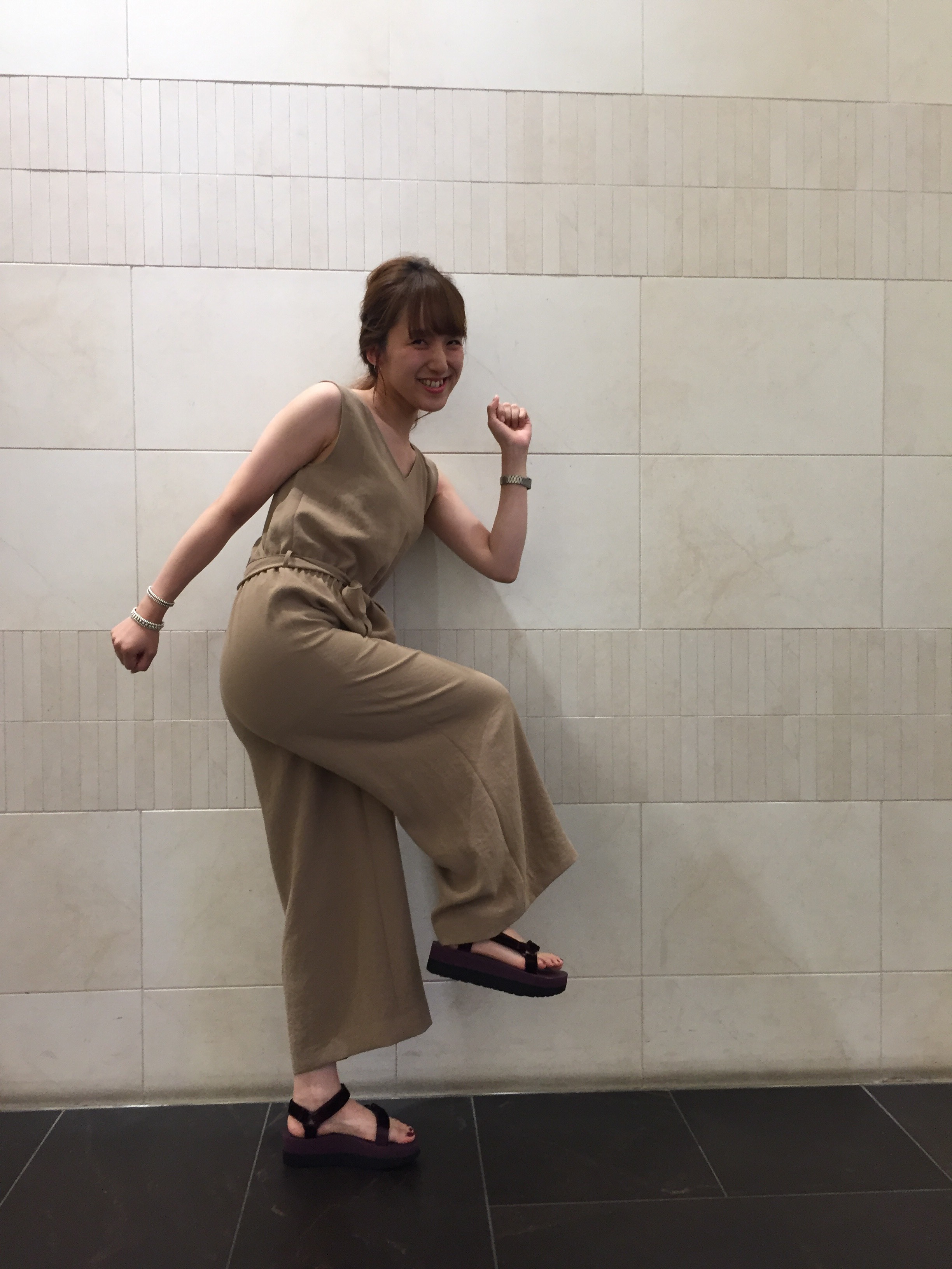 「ワンピースって、やぱり女性の魅力が引き立ちますし、とても素敵です。 でも、ここはあえてのオールインワン。動きやすくてアクティブなデートも 出来るって最高!Vネックと背中の開きのデザインもグッとくるポイントですね。 そしてTEVAではずすのもポイントです!ベルベット素材で差をつけてます。」 IMG_0959