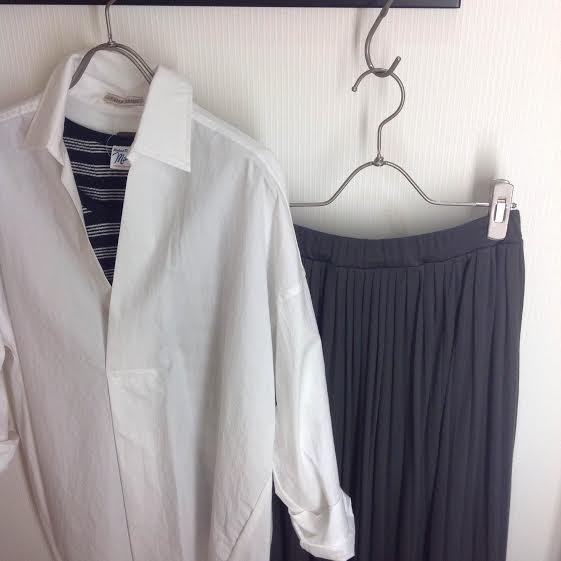 【White×Green】 ボリュームのあるビックシャツと合わせてシャープに。