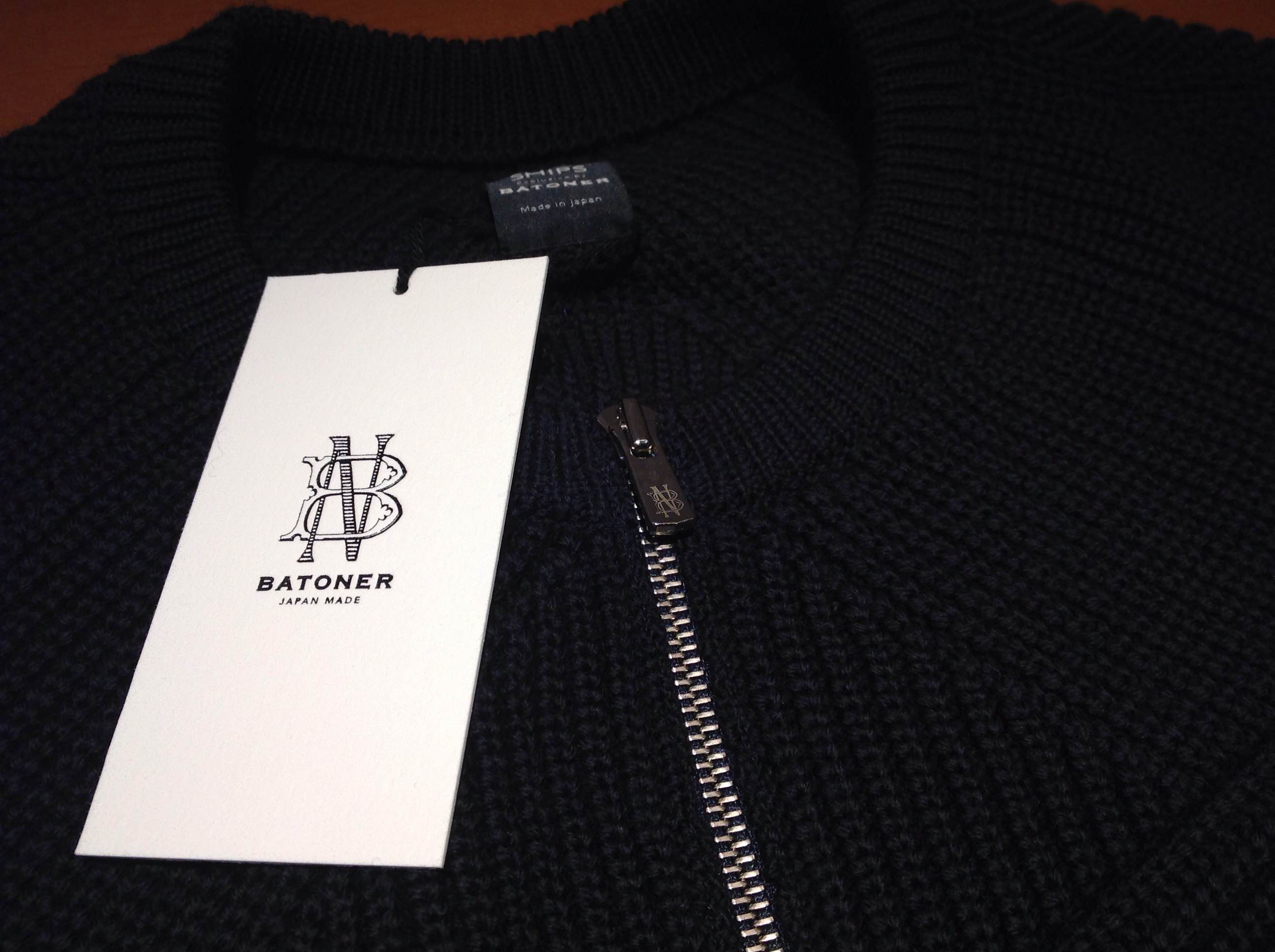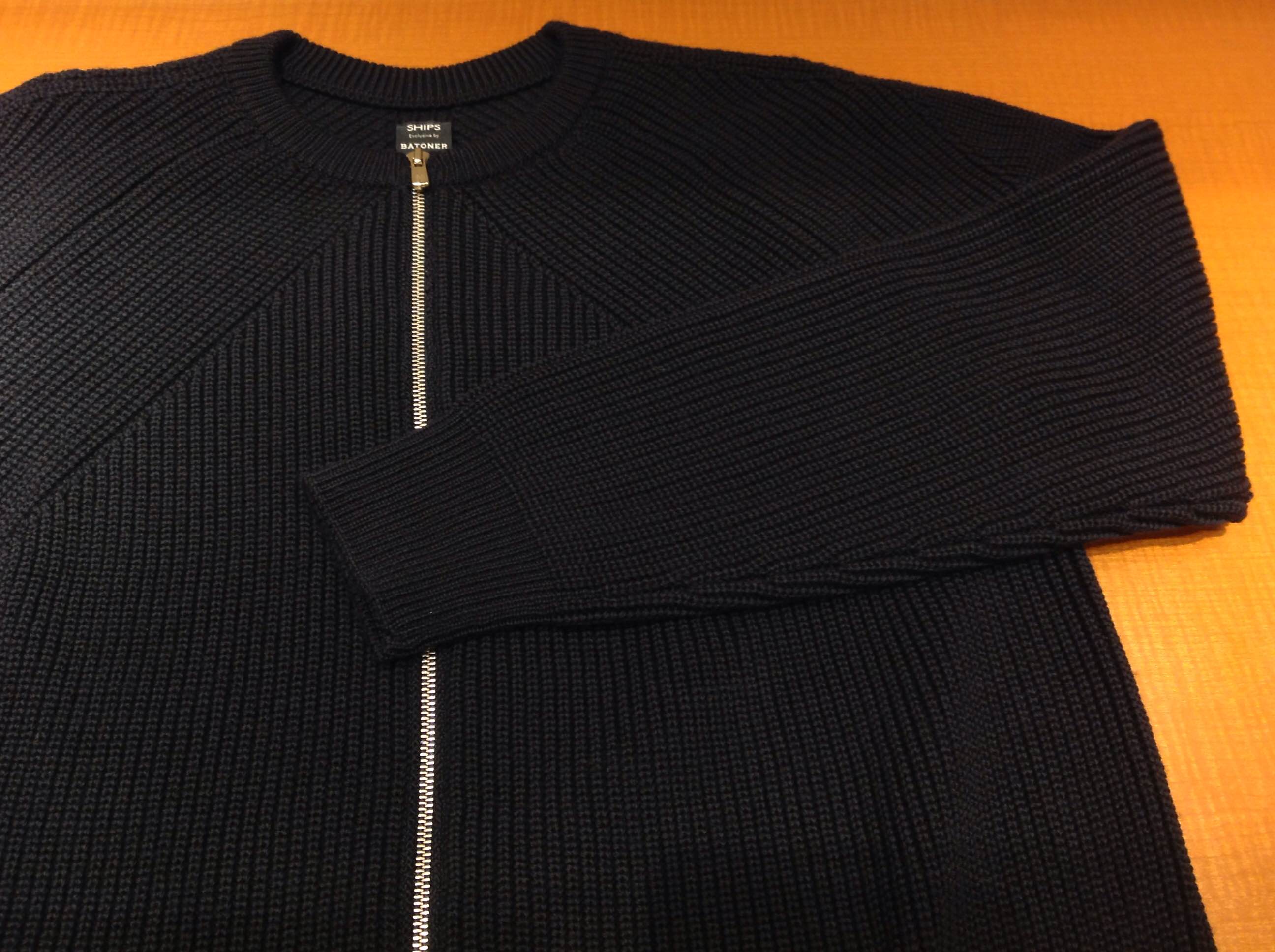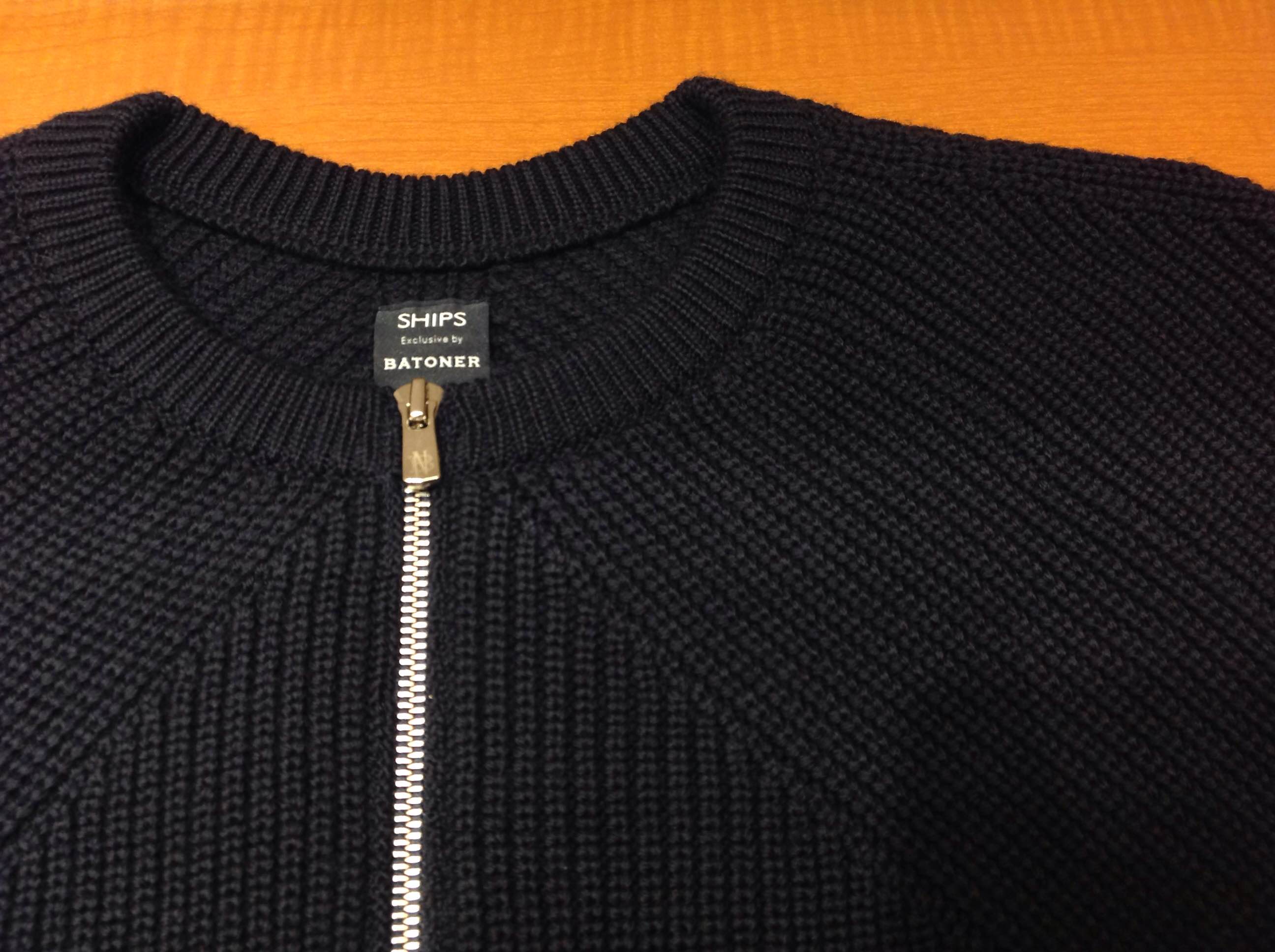 BATONER(バトナー) × SHIPS ジップアップニット 山形の老舗ニットメーカー"奥山メリヤス"から生まれたブランド、BATONERのSHIPS別注モデルになります。