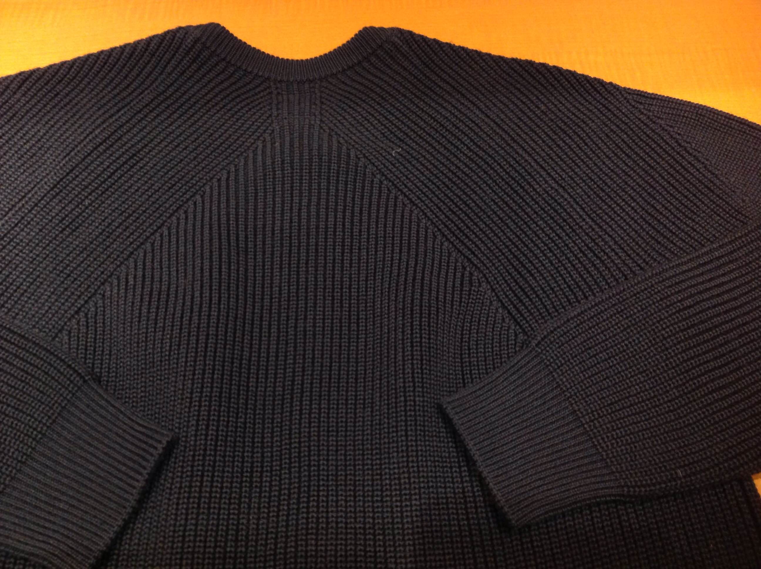 成型編みという手法を用い、身頃と袖を別々のパーツとして編むことによりできる身頃の逆V字が特徴的。