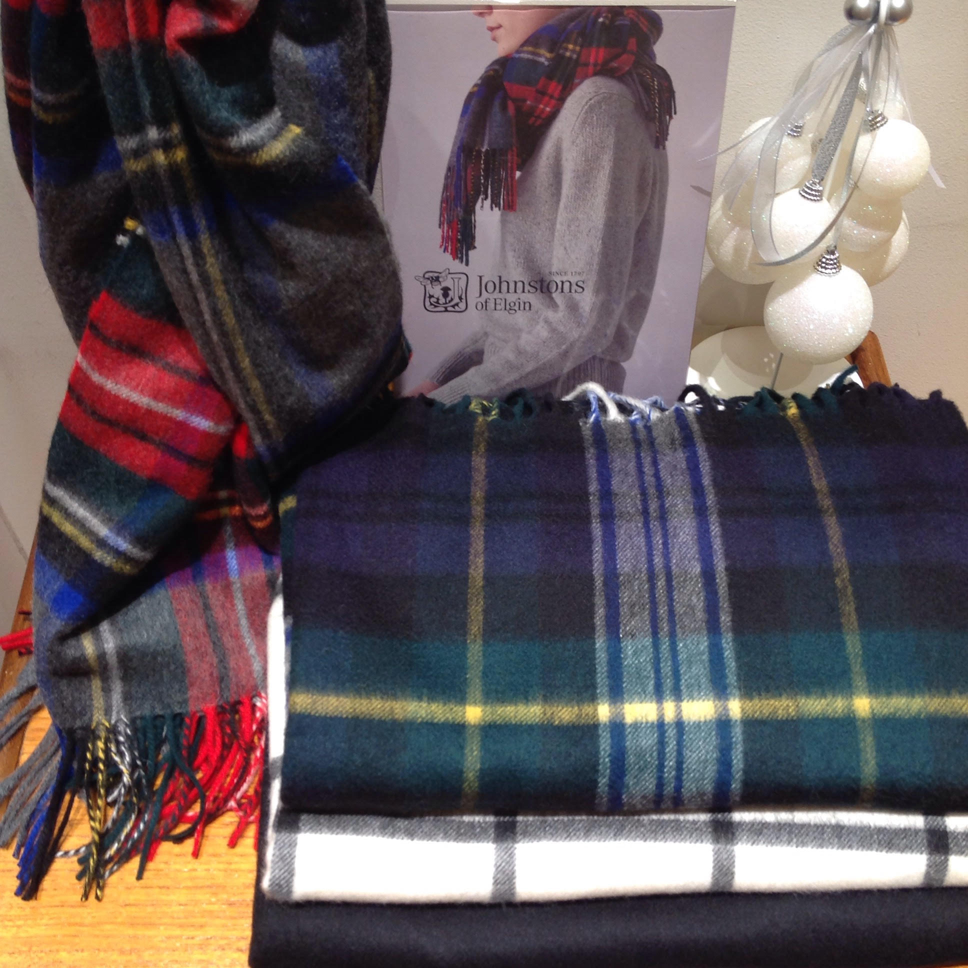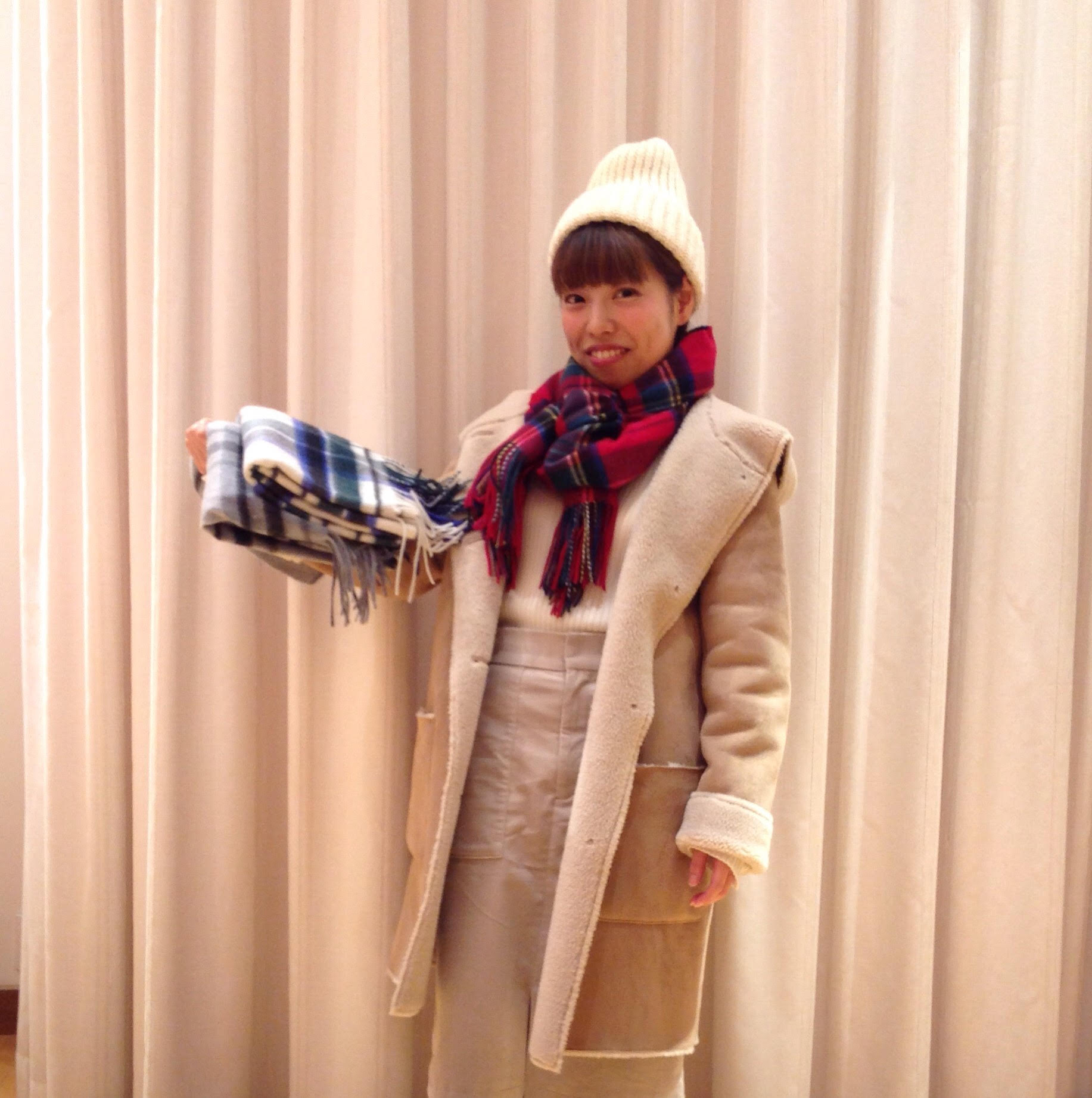 品番:318-25-0130 上代:¥9500(+TAX) 一枚で二度楽しめるので、欲張りな根本イチオシの商品です。 幅の広いストールなので首に巻くだけでなく、 肩から羽織っても素敵ですよ! もちろん、人気の Johnstons of Elgin もございます!