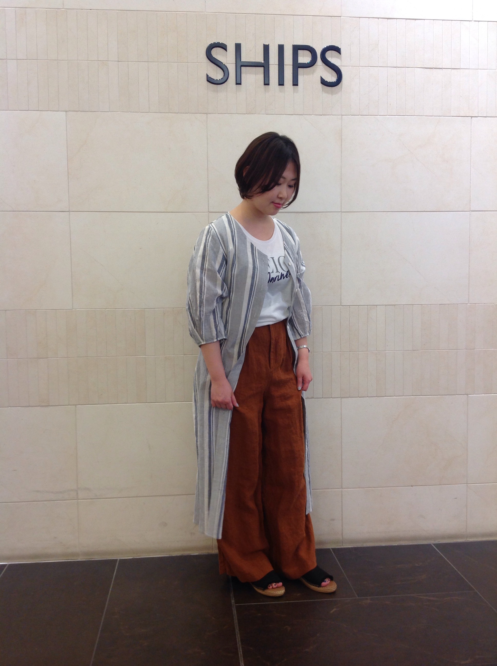 リネン100%ですが、気になるチクチク感がなくやわらかい着心地。 少し肉厚なので透け感も気になりません。 カラーはブラウン、鮮やかなターコイズブルー、ライトグレー、ネイビーの4色展開。 サイズもS/M/L展開なのでお好みのシルエットで穿いて頂けます。 皆様もリネンアイテムで夏を快適に ^^ ご来店お待ちしております!