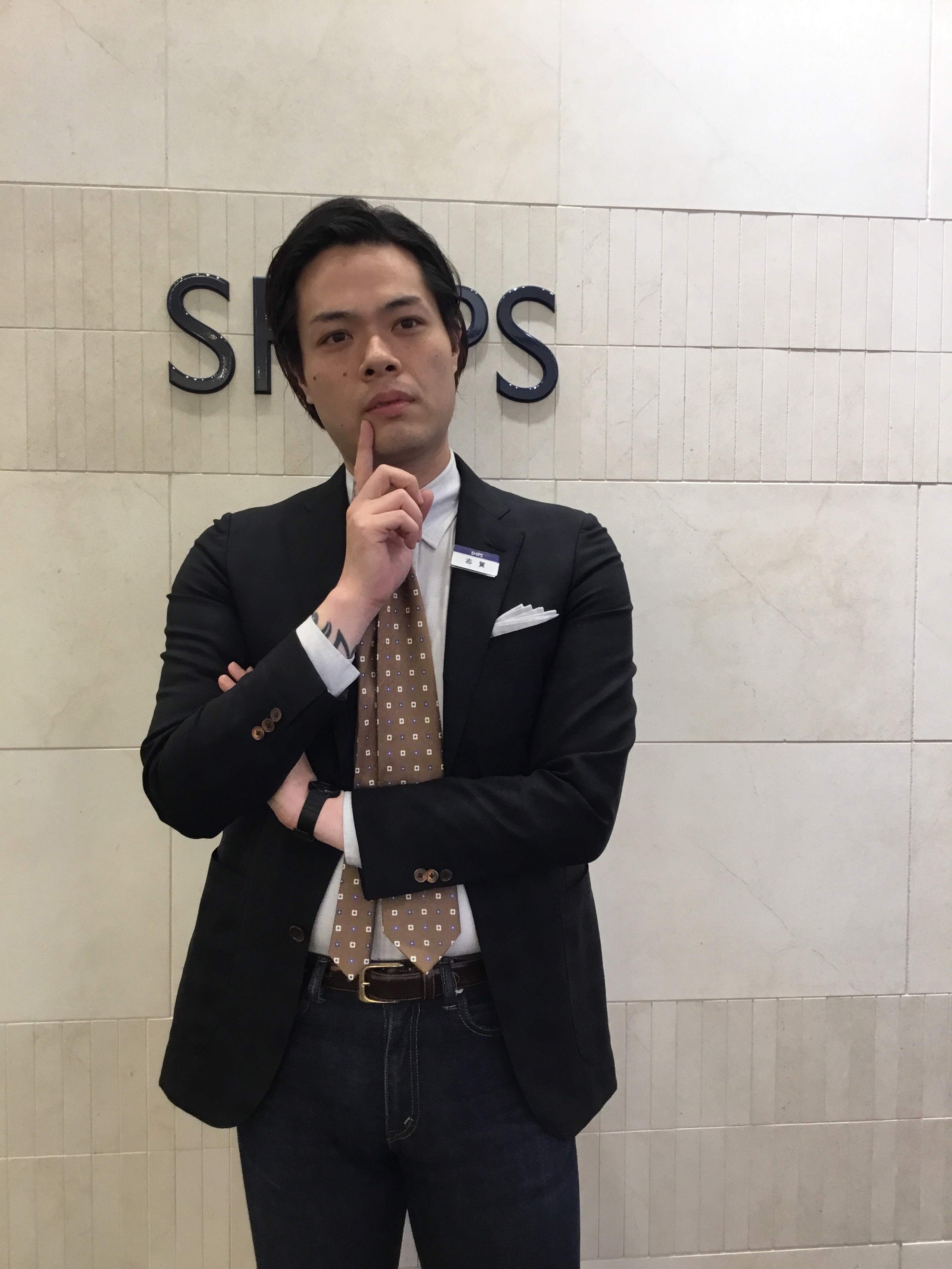 ブルーのストライプと赤のスカートは着ているだけで気分が上がります!鮮やかなお色のスカートが新鮮でわくわくです! お次はこっそりと、MENS担当の志賀にも聞いてみました!!