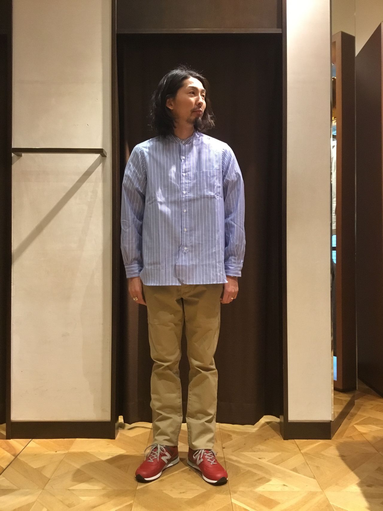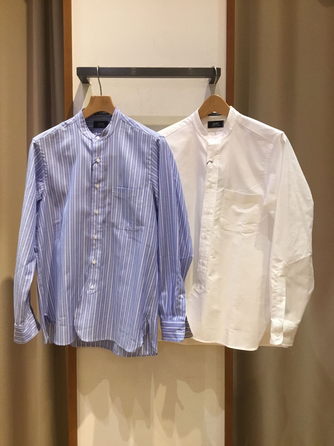 「SHIPS」×「IKEBEHAR」バンドカラーシャツ