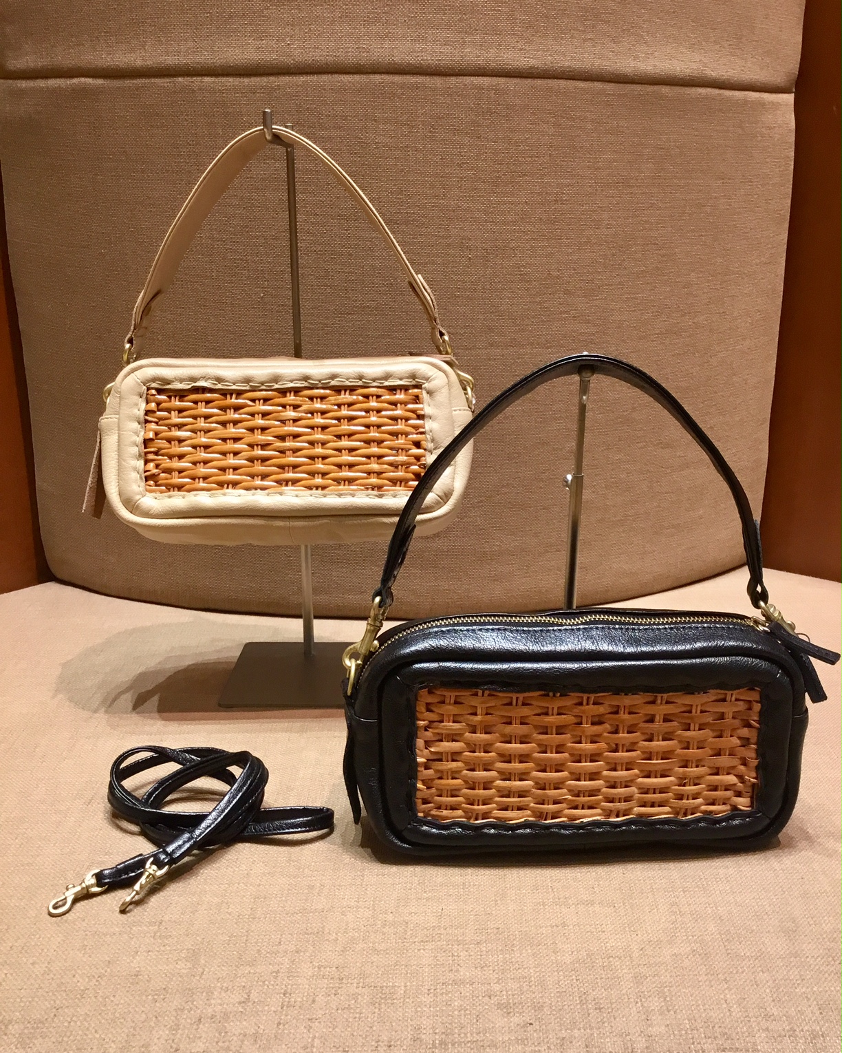 レザーとラタン素材を組み合わせたバッグ ¥19.000(+TAX)