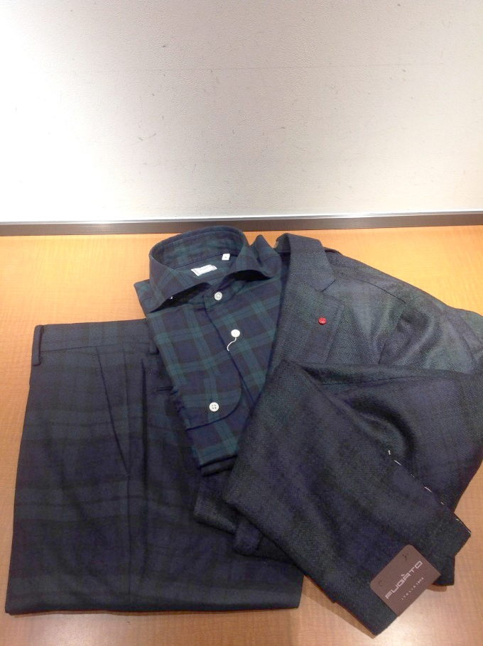 今期注目の柄であります、ブラックウォッチ。グリーンを基調にした柄ですが発祥がスコットランドだけあってカジュアルながらも洗練された印象を受けます。 やや起毛だった生地で高級感のある独特の雰囲気が感じ取れます。