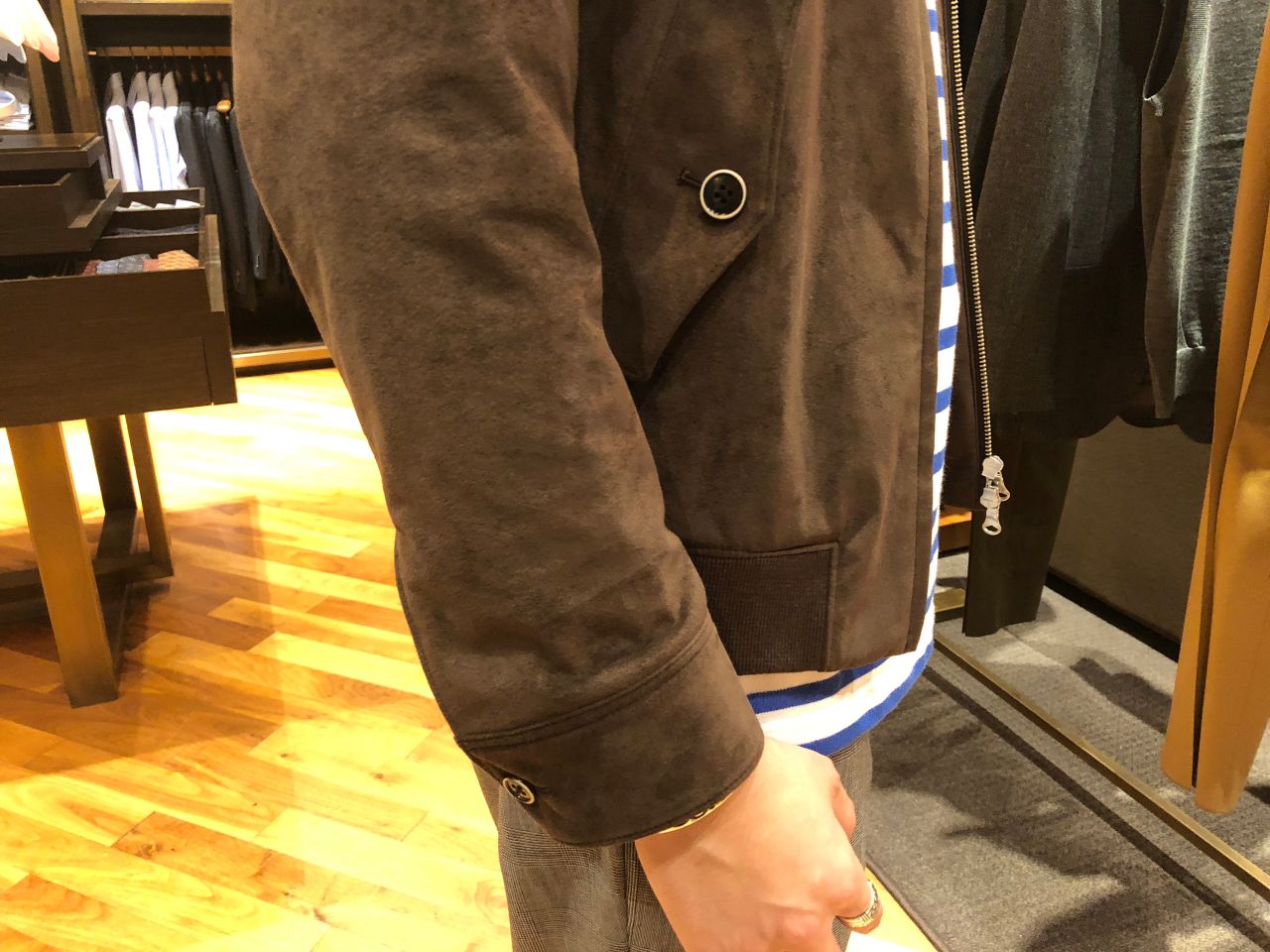 スウェードブルゾンに袖を通しましたよ。