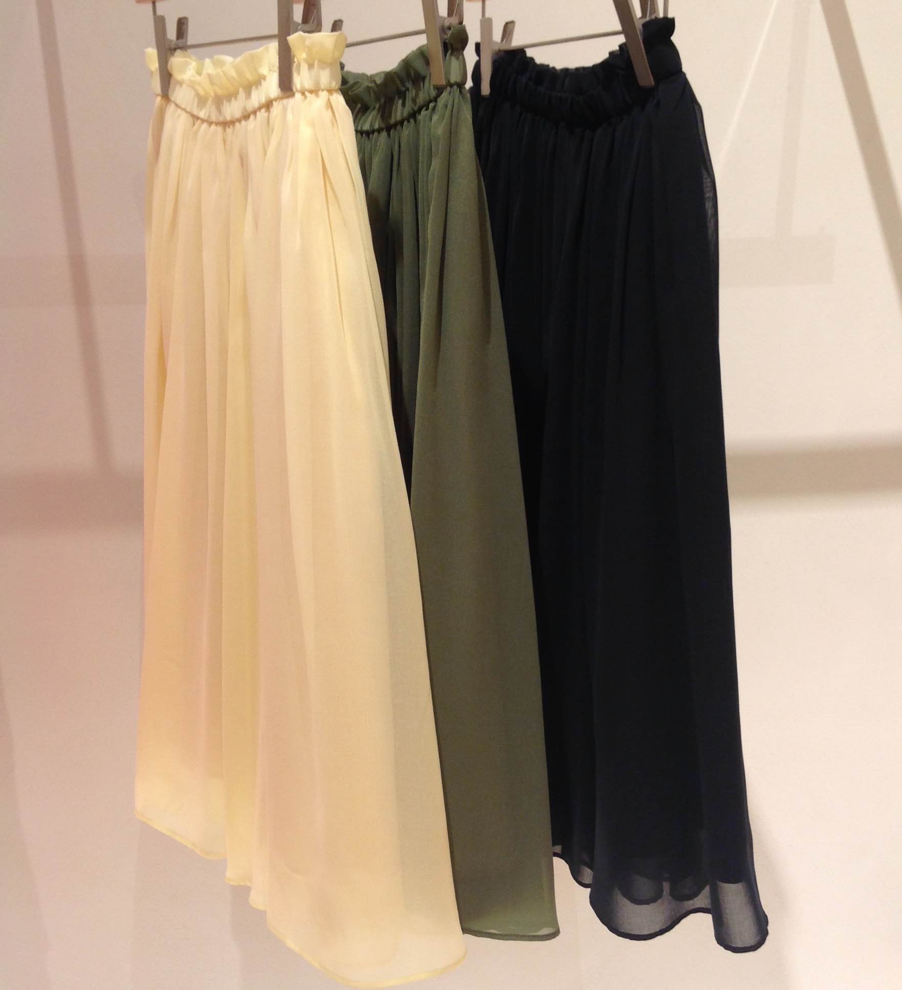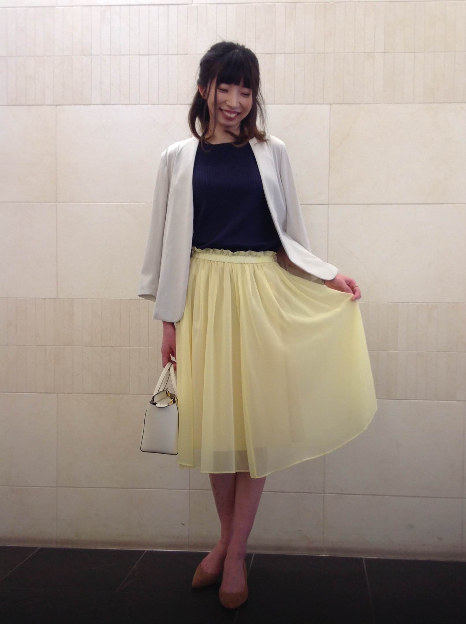 WD:CUP/PA NO/LAPEL JK 317-02-0781 ¥24,000-(+TAX) WD:SLK/LNN NO/SL PO 316-32-0042 ¥11,000-(+TAX) WC:CHIFFON TUCK SK 313-20-0198 ¥14,000-(+TAX) ふわふわと揺れるシフォンタックスカートは女性らしさピカイチの一点です! オフィスの中が、ぱっと明るくなりそうなイエローです。 お仕事はもちろん、カジュアルなコーディネートも楽しめそうですよね♪ 春・夏に大活躍すること間違いなしの定番スカートです。
