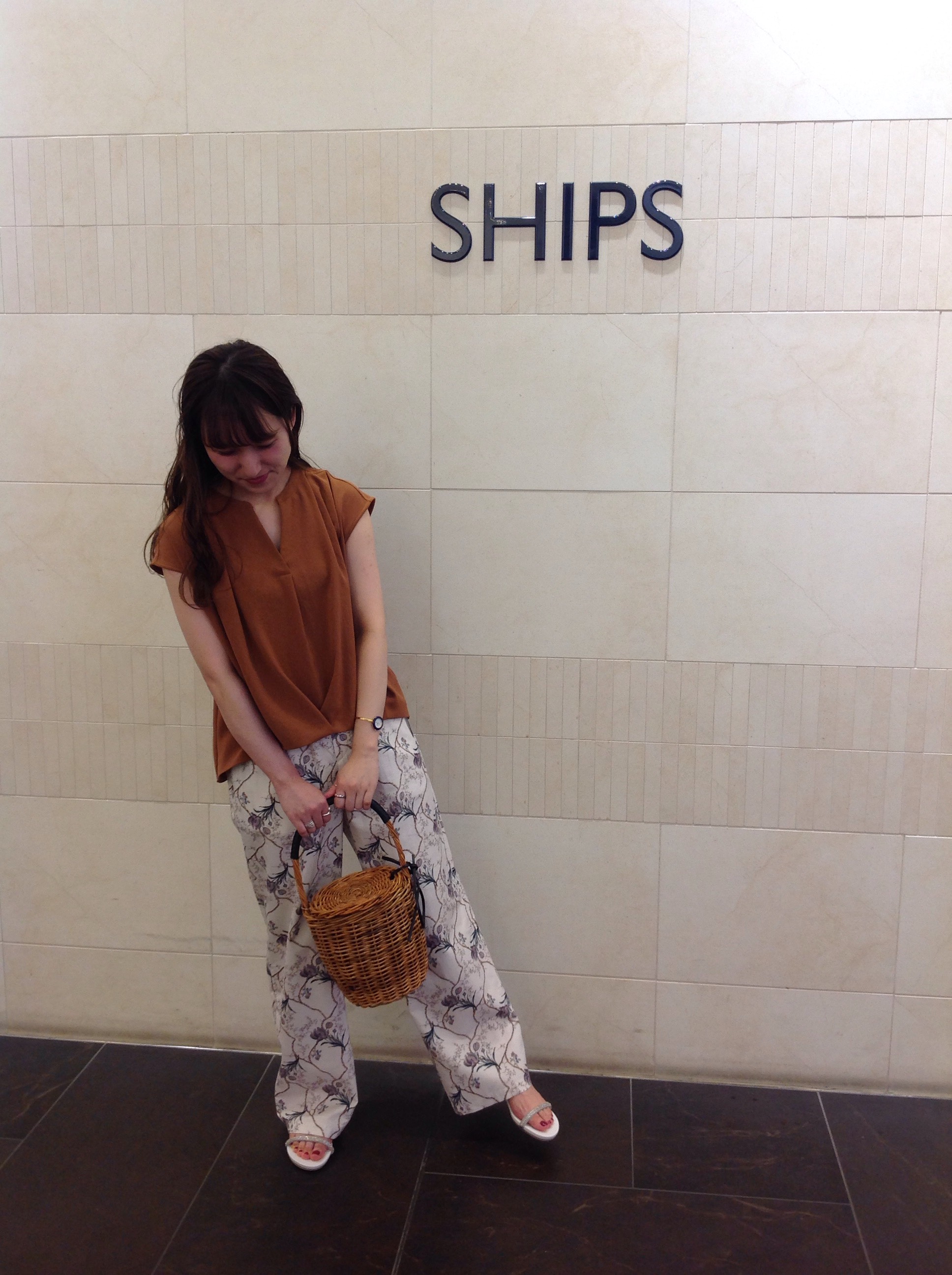 とろみのあるトップスに柄物パンツで合わせたスタイリングです。 トップスはスリーブがしっかりあるデザインなので、 腕をだすのに抵抗あるわたしでも堂々と着れる形が嬉しいです。 スタッフ千葉いわく、今年の春夏はブラウンが気になる!とのこと。 動きやすいパンツスタイルですが色使いが大人っぽく、新鮮です。 *STAFF 我妻 おすすめコーディネート*