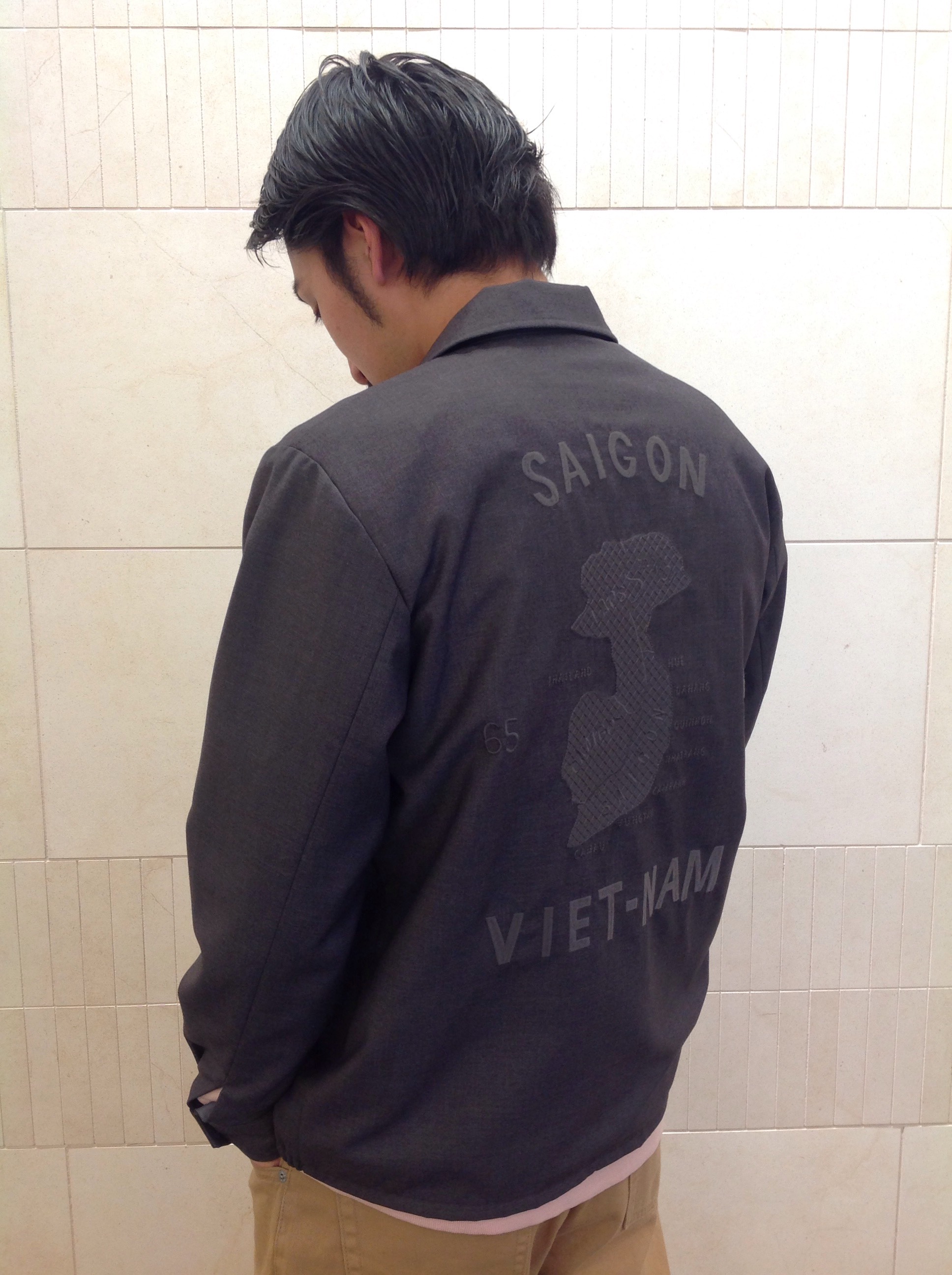 VIETNAM JKT ¥13800(+TAX) 背面に同色の刺繍を施しシンプルながらも存在感のあるアイテムとなっております。   IMG_3366