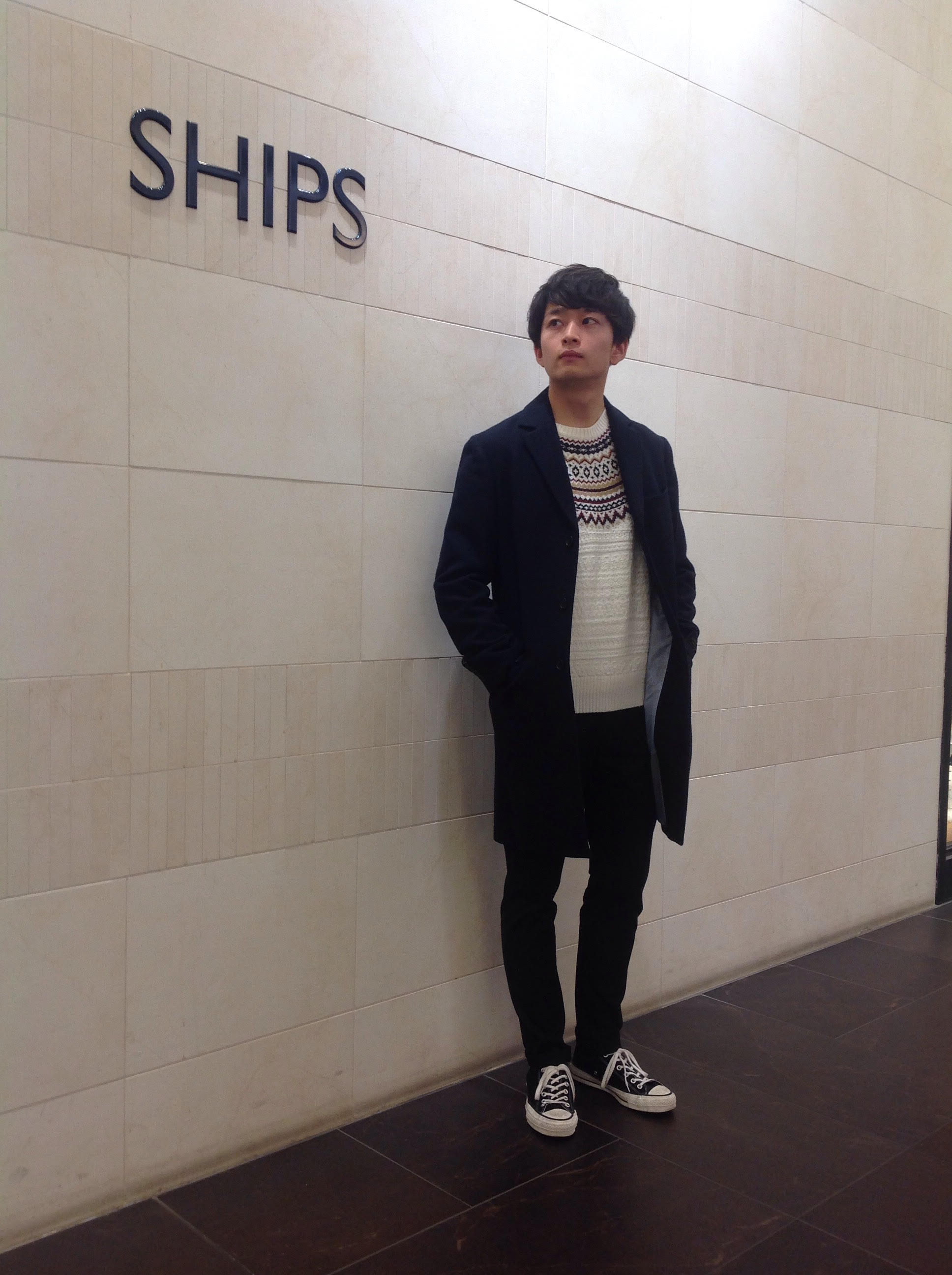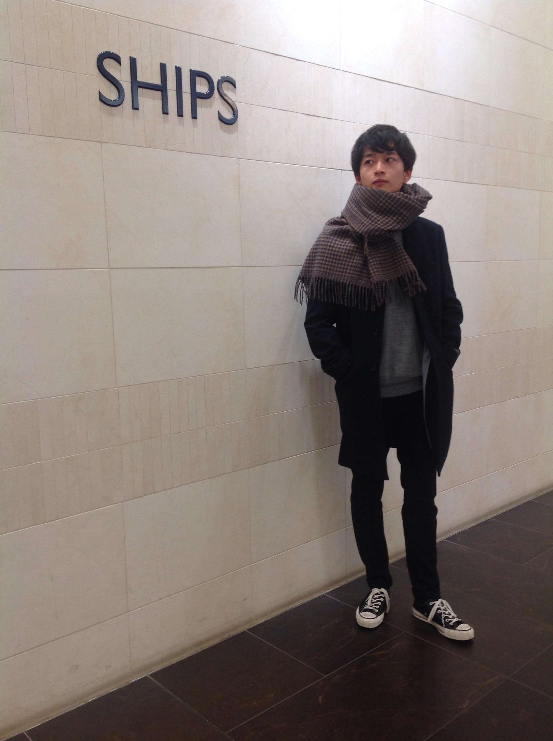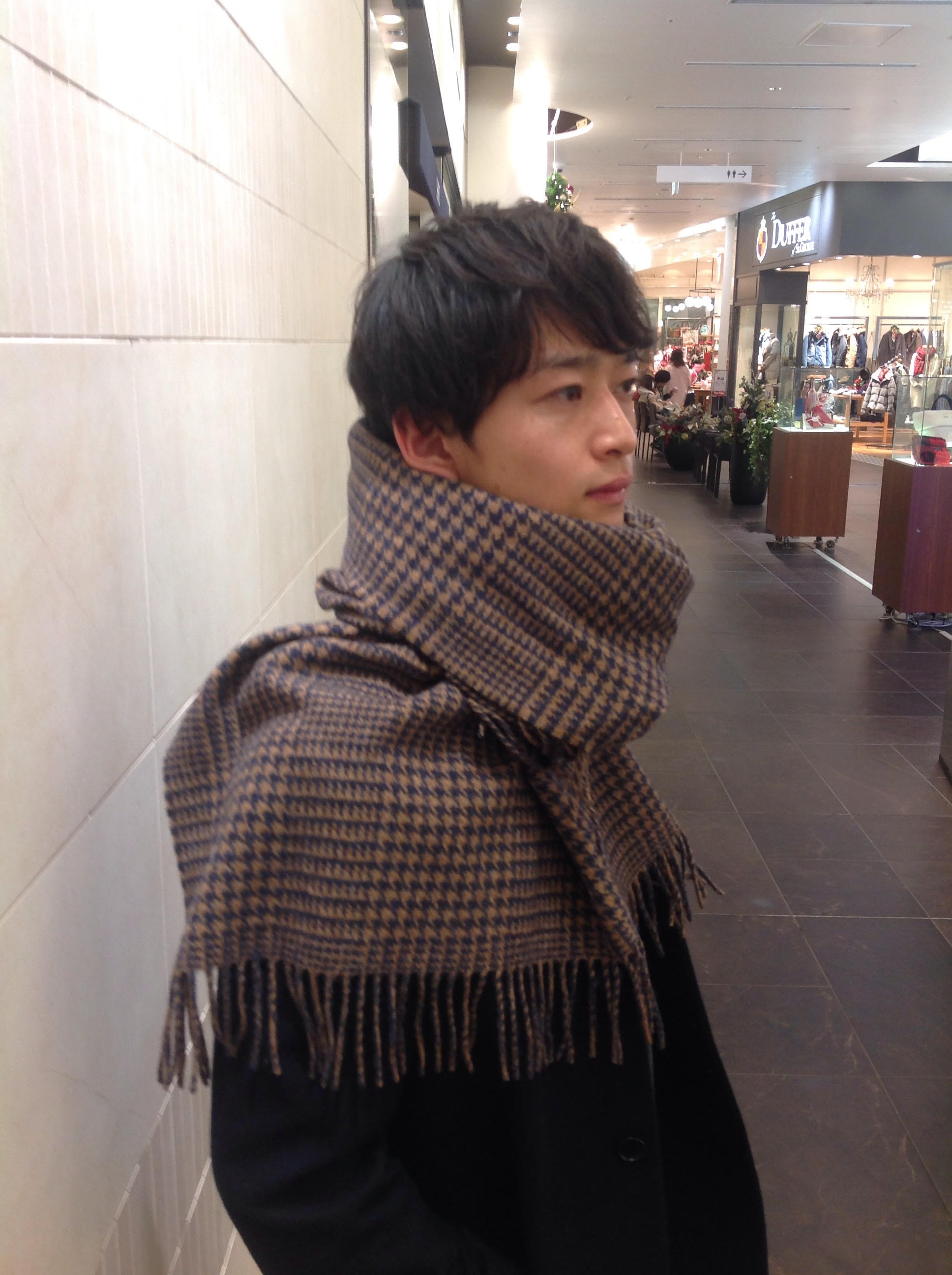 JB:0099 チェスターコート 16AW 品番:124-15-0099 ¥20,000(+TAX) JB:フェアアイルクルー 品番:126-05-0159 ¥10,000(+TAX) シンプルなチェスターコートのコーディネイトがグッと華やかになりました! 柄が部分的にしか使われていないので、大人っぽさを崩すことなくコーディネートに取り入れることができます。 続いては、大判の柄物マフラーです!
