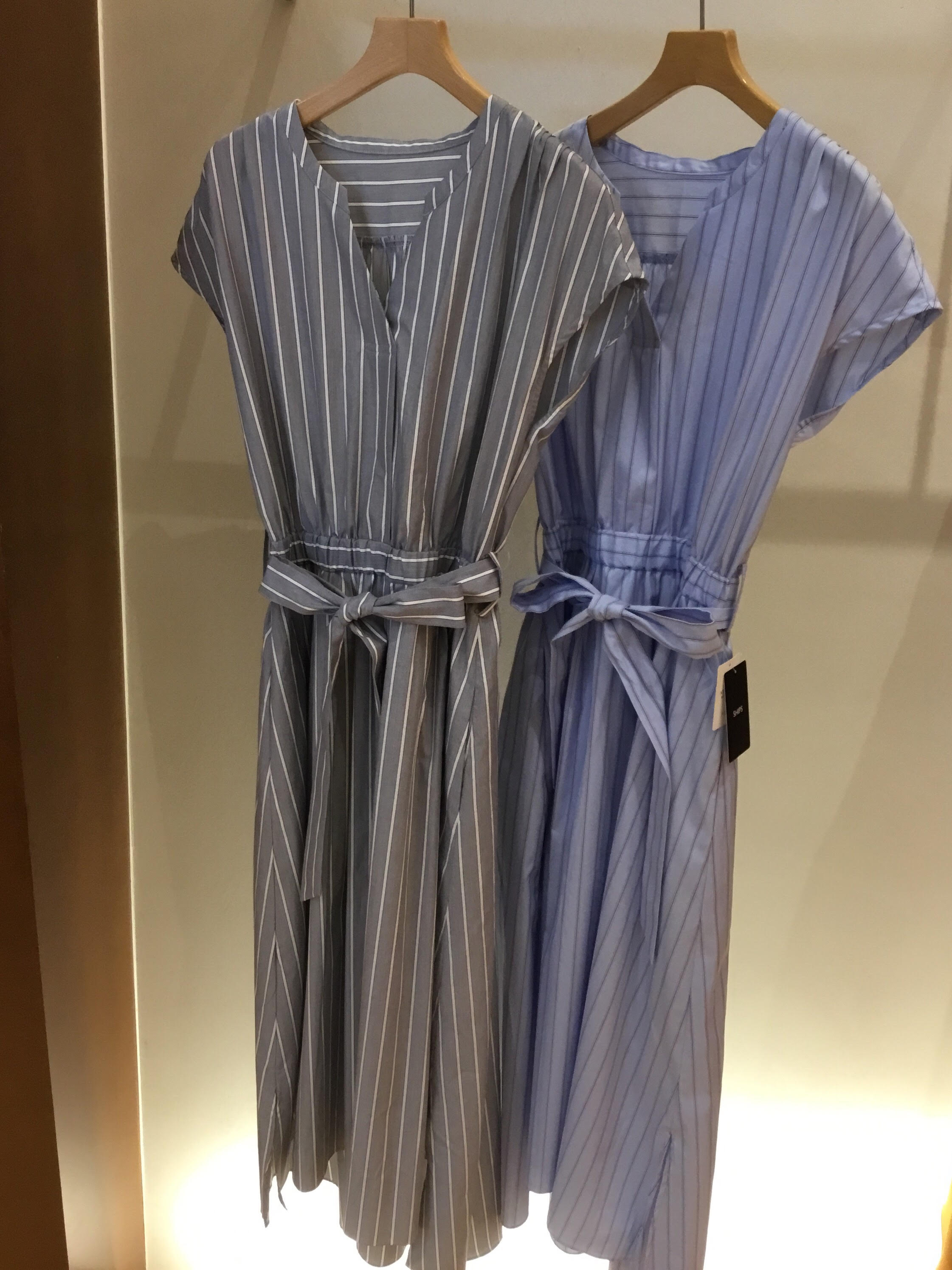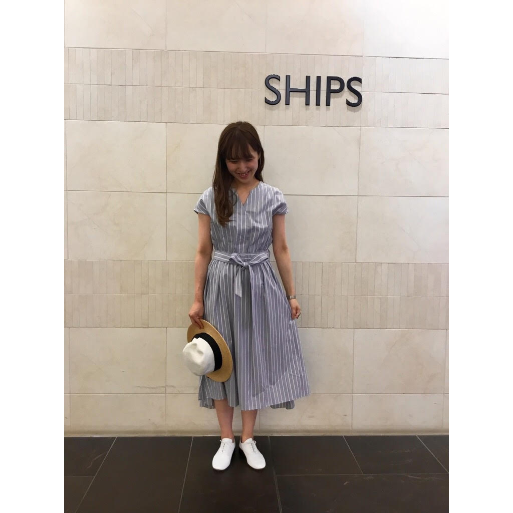 そして最後にご紹介するのは、女子度UPのシャツワンピース! ストライプがさわやかで、着丈もあるので素足でも安心して着れますね。