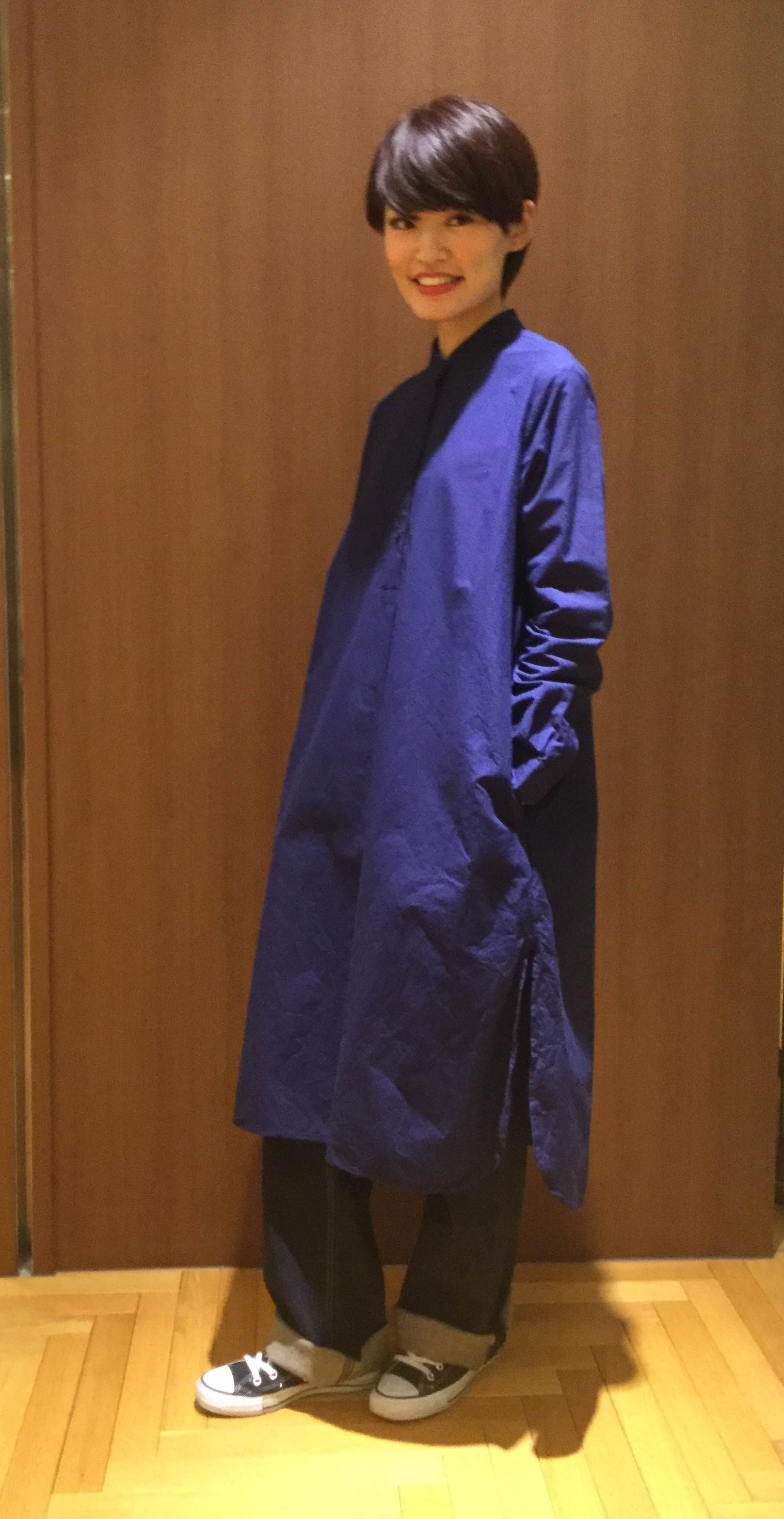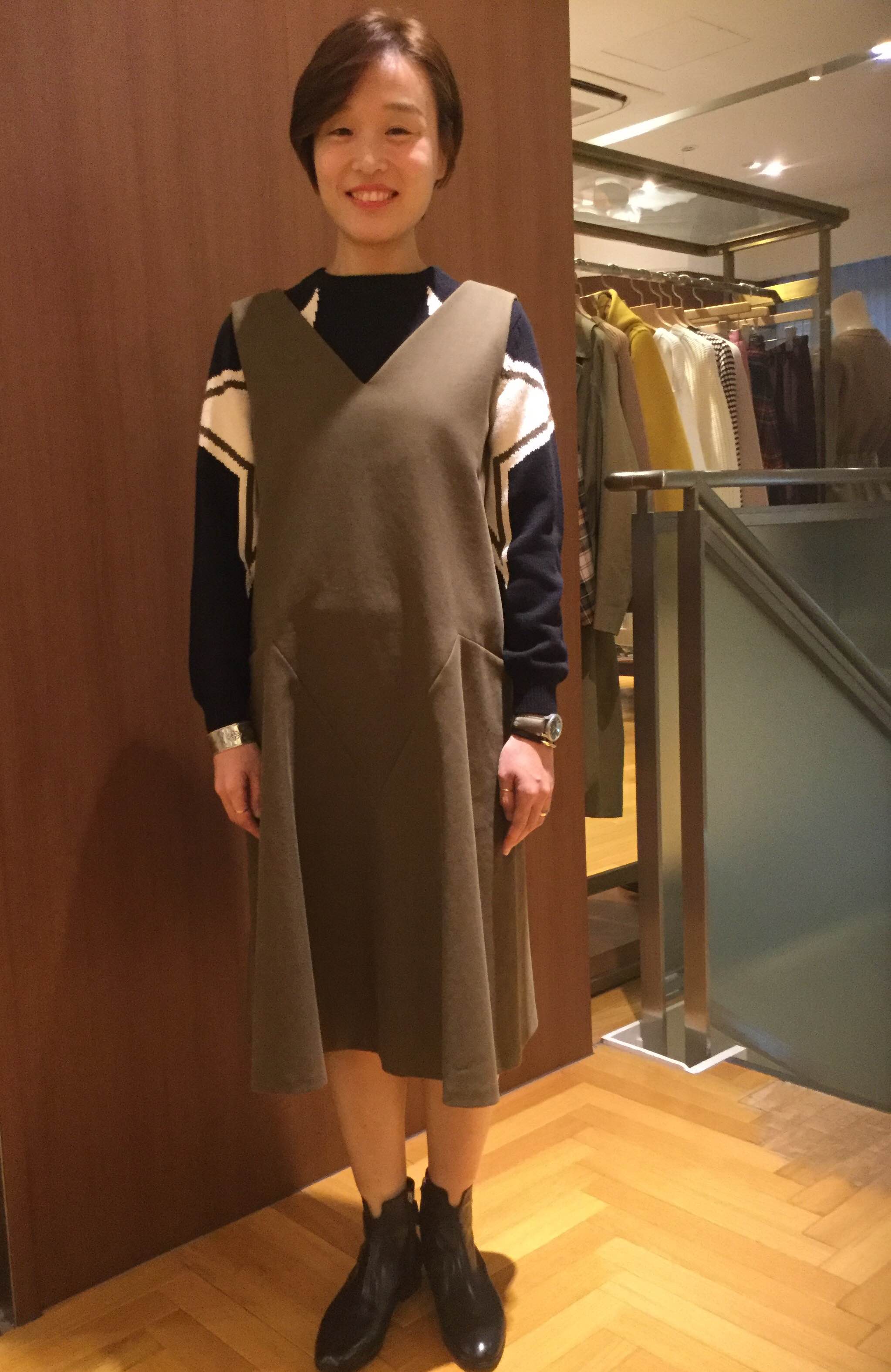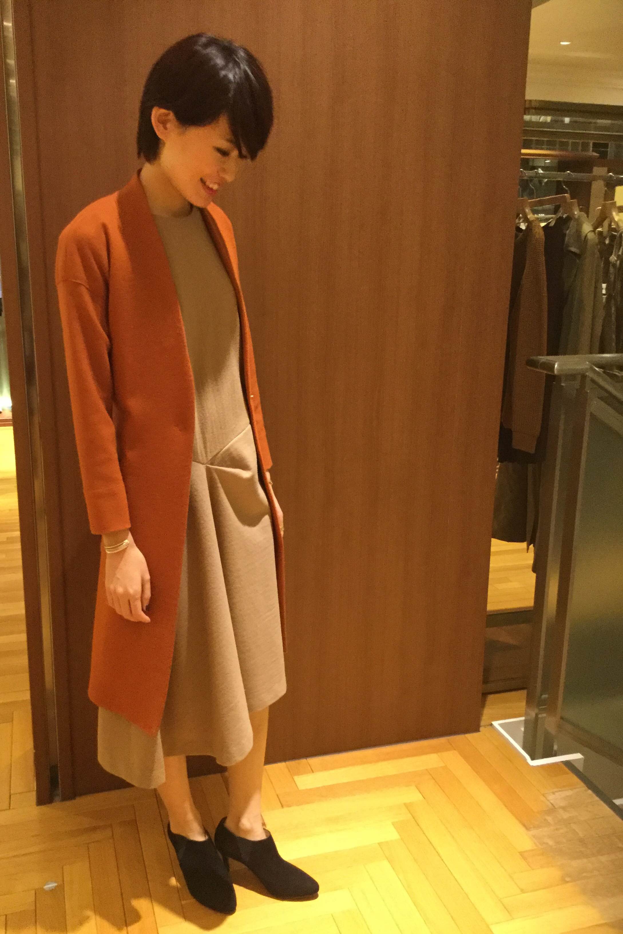 ウールの柔らかいマスキュリンなワンピース 人が着て動きの出るデザインがとても魅力的です