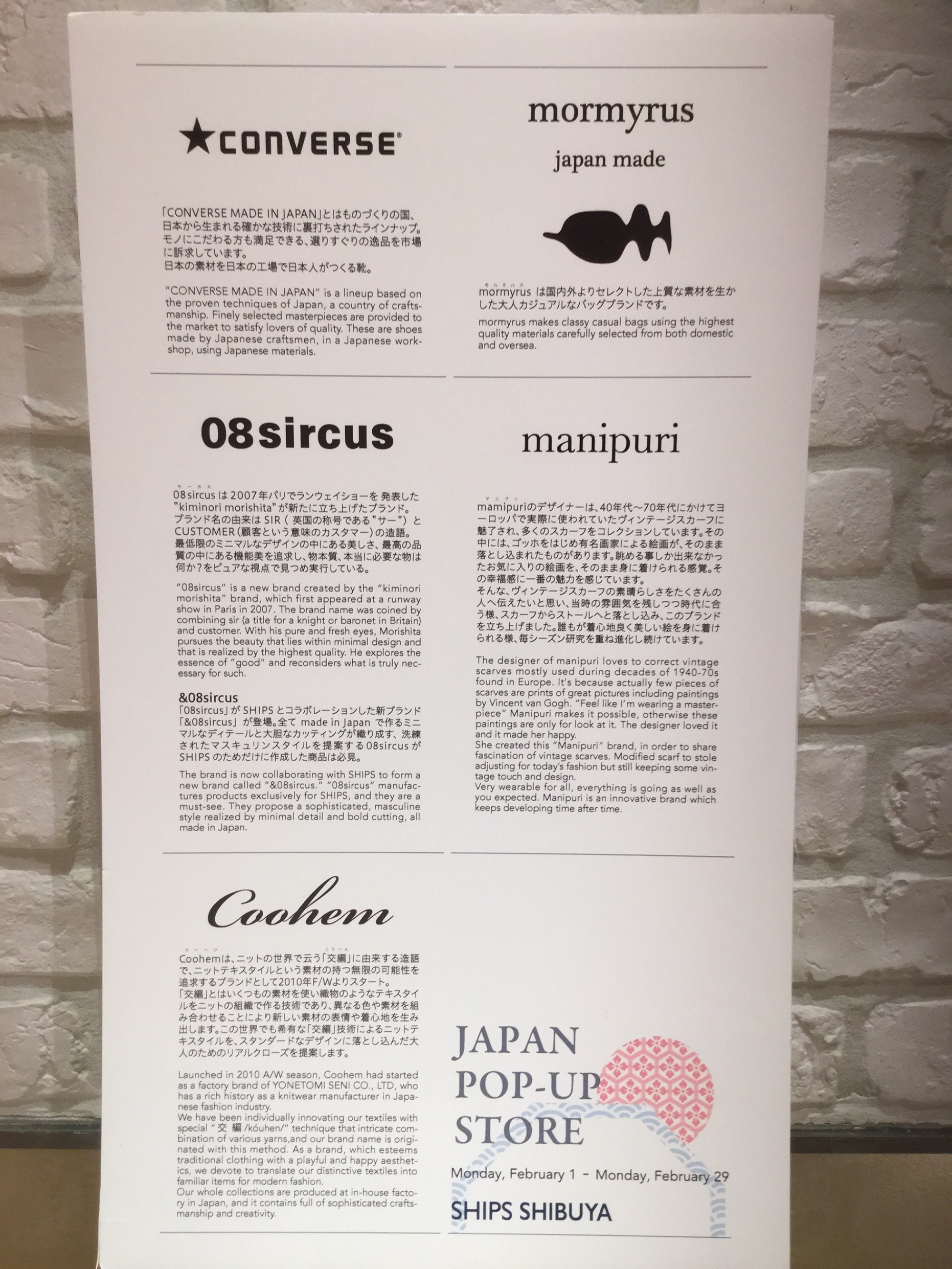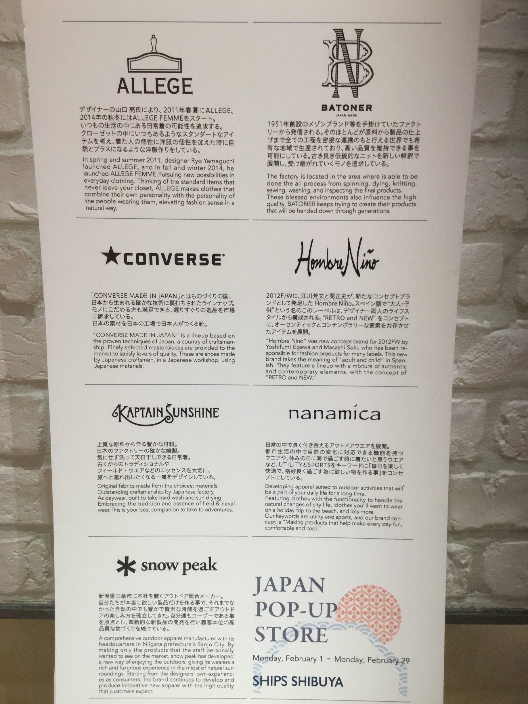 今回はSHIPS渋谷店1Fにて開催中の「JAPAN BRAND FAIR」のご紹介です。