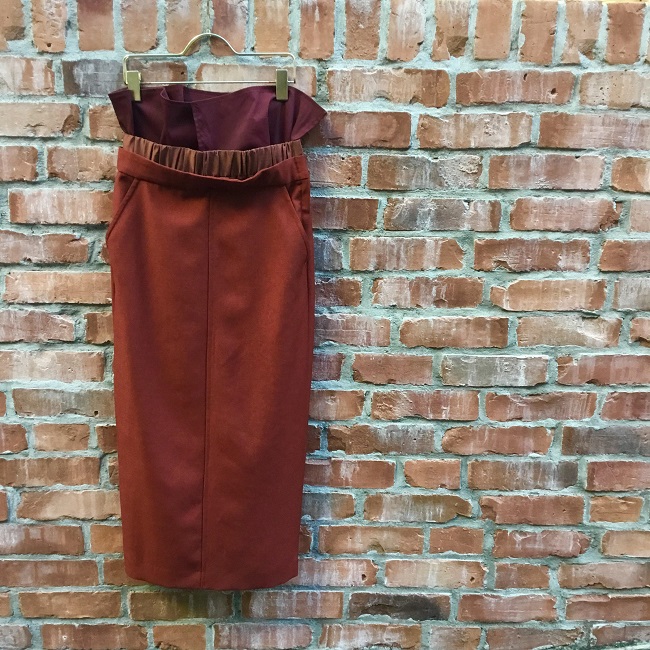 『CLANE(クラネ)』 コンセプトは“ORIGINAL STANDARD”。 “STANDARD”に現代的な柄、素材、デザインを取り入れ新しいフォルムを表現。 「特別な一枚」を重視し、長く愛用できる洋服を提案しています。 まずはウエストのデザインが印象的なスカート。 タイトなシルエットで上品にお使い頂けます。