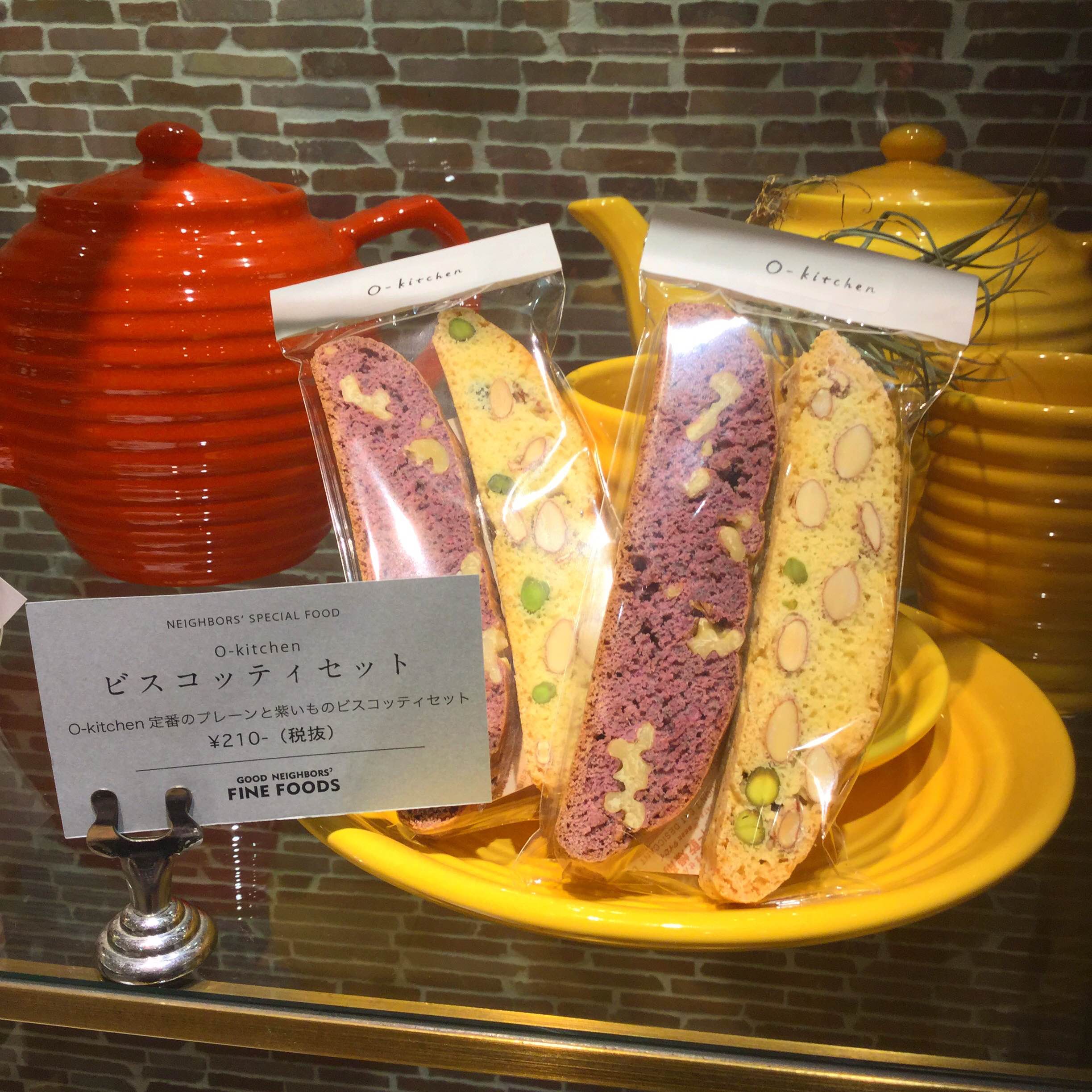 "O-kitchen" ・ビスコッティセット ¥210(+TAX) プレーンと紫いものビスコッティセット。完売御礼!