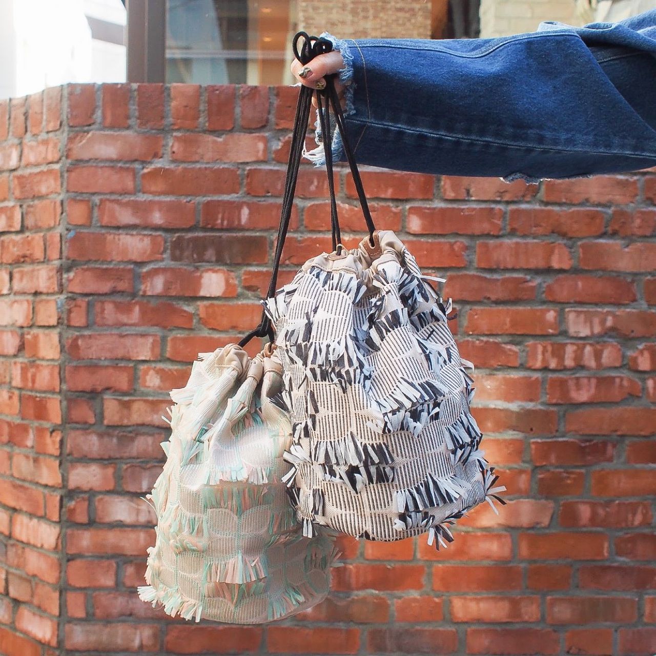 今年もまだまだ根強く人気アイテムの巾着タイプのバッグ。