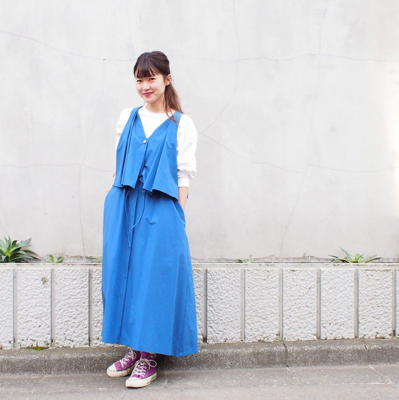 こちらは鮮やかなブルーが目を惹くワンピース!