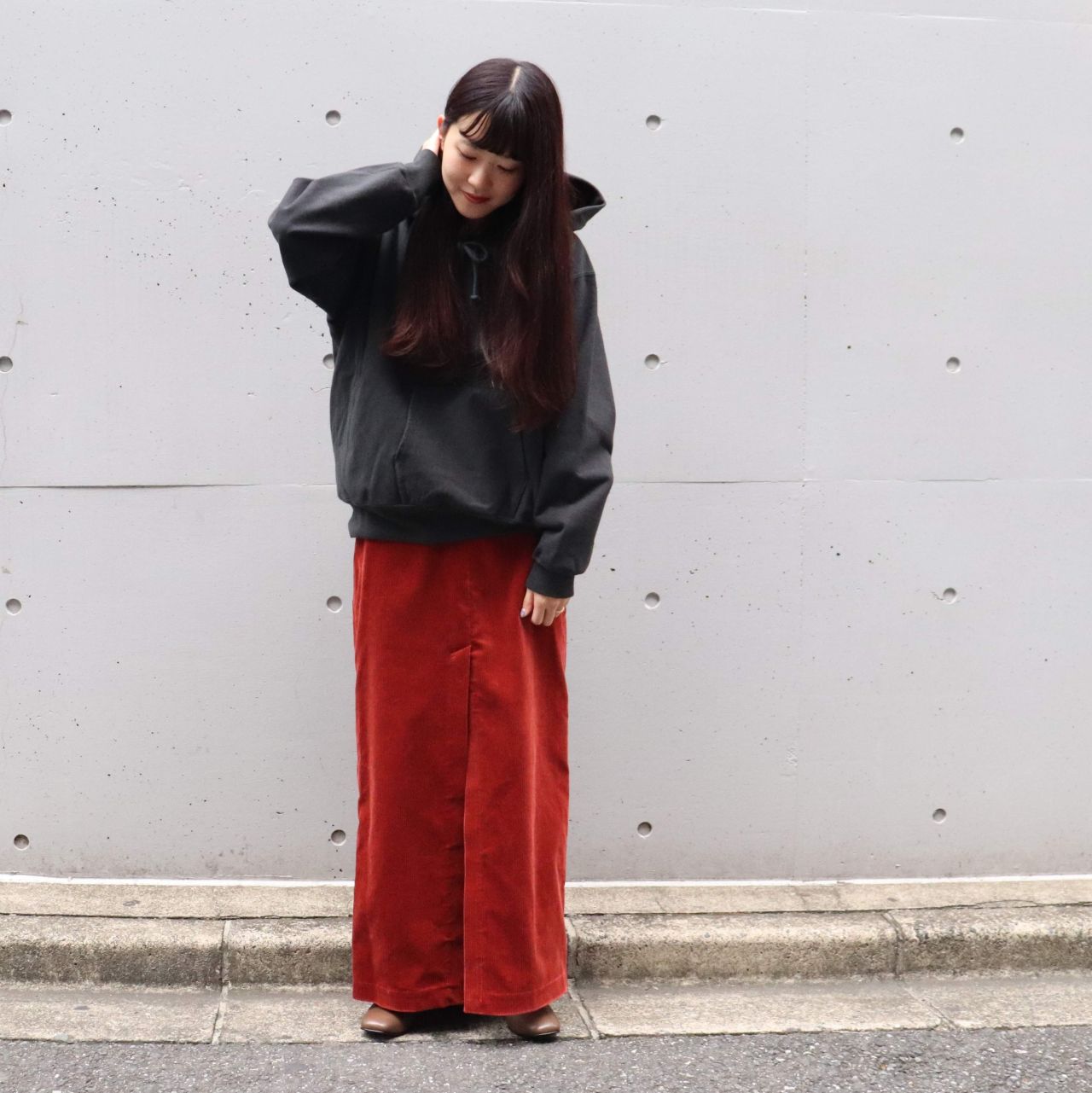 CORD SLIT LONG SKILT<313-25-0234>