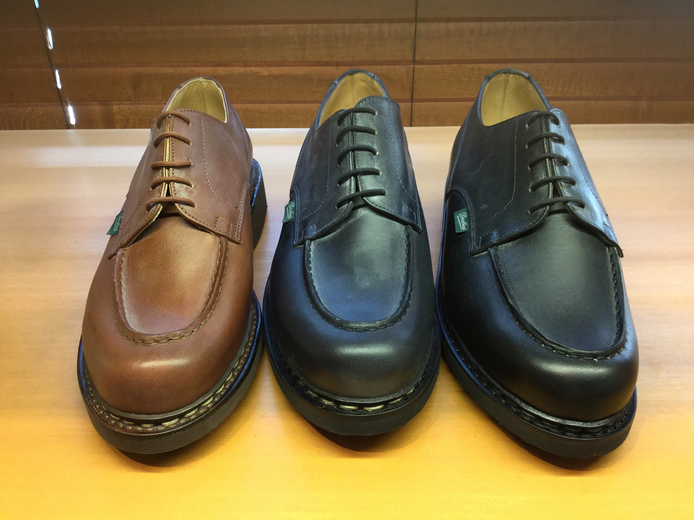 Paraboot 1908年にフランスにて誕生。 天然のラバーソールが一番人気であり今もハンドメイドで製作されている老舗ブランド。 名前の由来はテラックスを輸入するアマゾンの港であるPARAと創業者がアメリカにて興味を引いたBOOTを掛けた事から始まります。 元々、登山靴として作られた為からとても履きやすく、更にドレスの服装にも取り入れる事のできる数々のモデルは多くのファンを魅了しています。           新たに入荷致しましたモデルをご紹介致します。     CHAMBORD image53