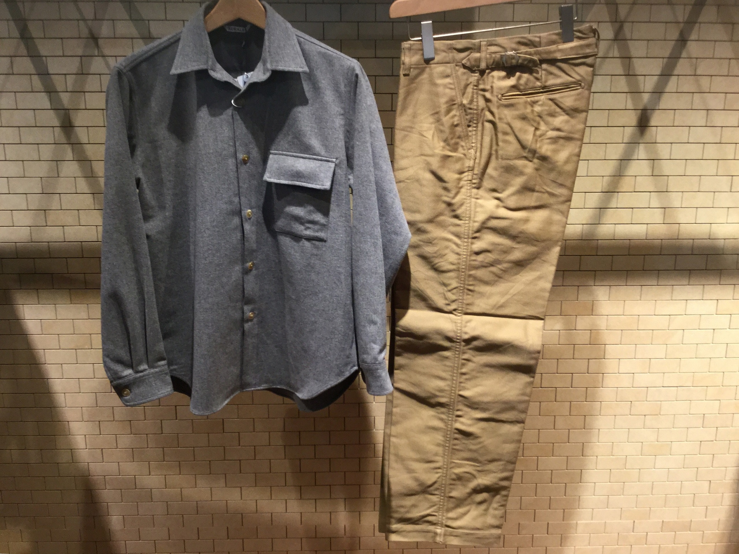 皆様、こんにちは。   今回は3F、メンズカジュアルから今イチオシのジャパンブランドをご紹介致します。       AURALLE 2015年春夏より始まるジャパンブランド。 元、人気ブランドにてデザイナーやパタンナーを行っていた岩井良太氏がスタート。 母体が生地屋であり日本屈指の生産背景で作り出されている上質な素材とシンプルで気取らないデザインが特徴的なブランドである。 ファーストシーズンから問い合わせや雑誌掲載も多く今大注目のブランドと言えるであろう。         そんなアイテムたちをご紹介致しましょう。     シャツ&パンツ image72