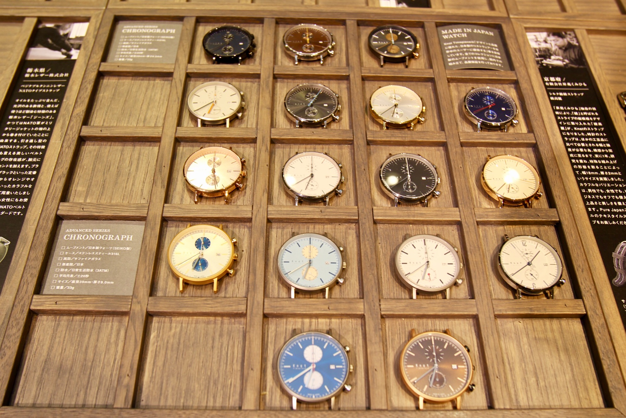 シンプルなフェイスのスモールセコンドにメタルブレスストラップ。 こちらは¥17.500(+TAX) もう1つの組み合わせはスモールセコンドに槙田商店のトンボ柄が織られたストラップを装備。 こちらの組み合わせは¥20.000(+TAX) どれにしようかと迷ってる時間も楽しくてあっという間です! これからのギフトシーズン、大切な人への贈り物。 またはペアで作るもよし。 是非この機会に選ばれてはいかがですか? 1階フェアスペースでお待ちしております。 瀬谷