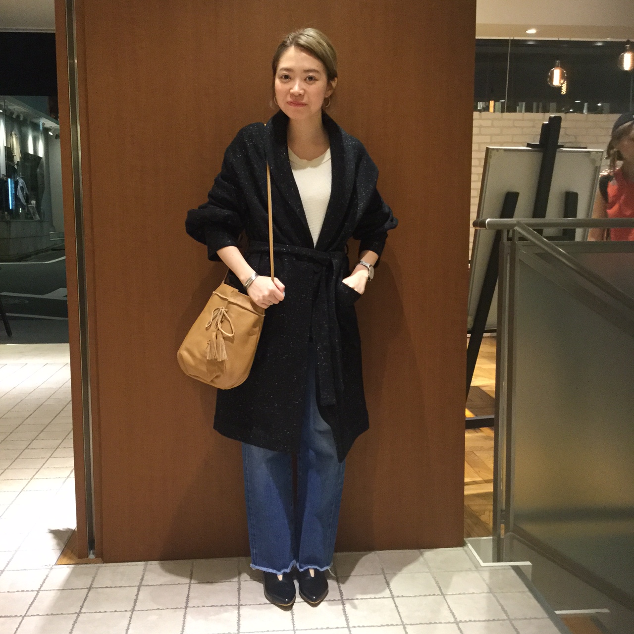 こんな感じで黒いコートに持つとアクセントになって可愛いです。ベーシックなお色がお好きな方でも、デイリー使いがしやすいと思います。