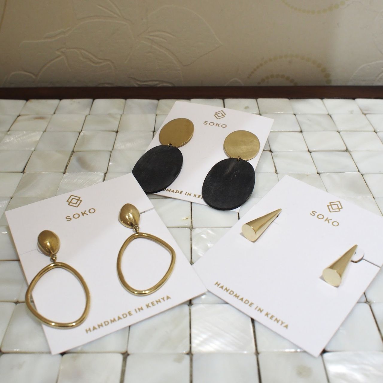 ケニアの職人によるハンドメイドの【SOKO】のピアス。