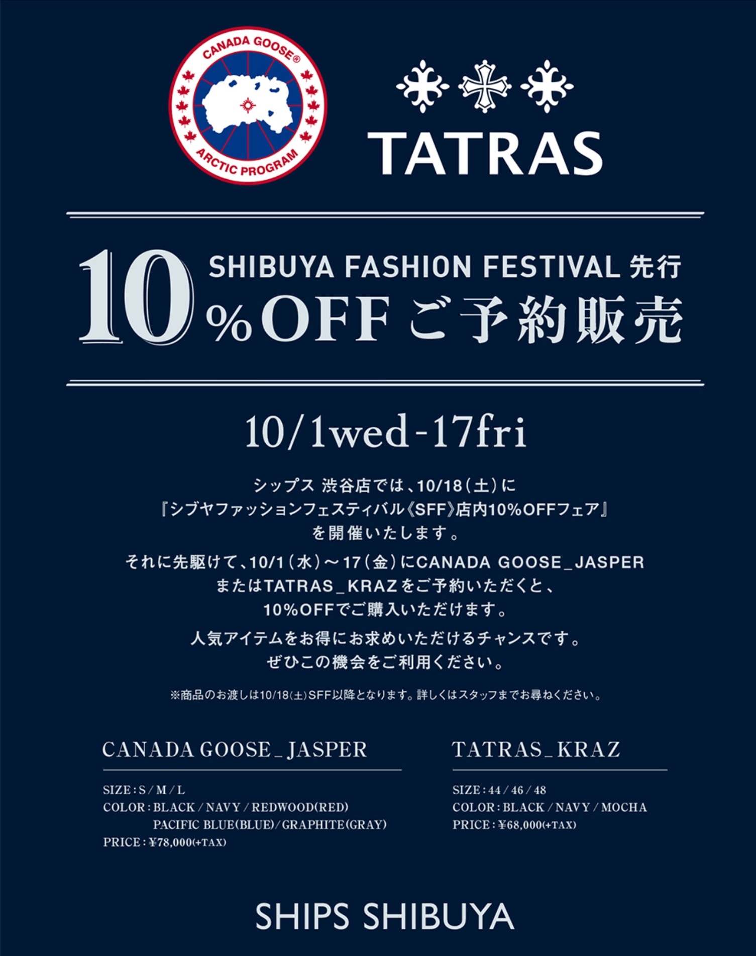 SHIBUYA FASHION FESTIVAL 先行・10%OFF ご予約販売