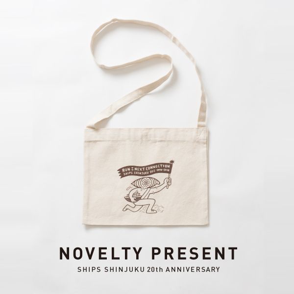 また¥15,000(+TAX)以上お買上のお客様に、イラストレーターの間弓浩司氏によるイラストをプリントしたサコッシュをプレゼント致します。