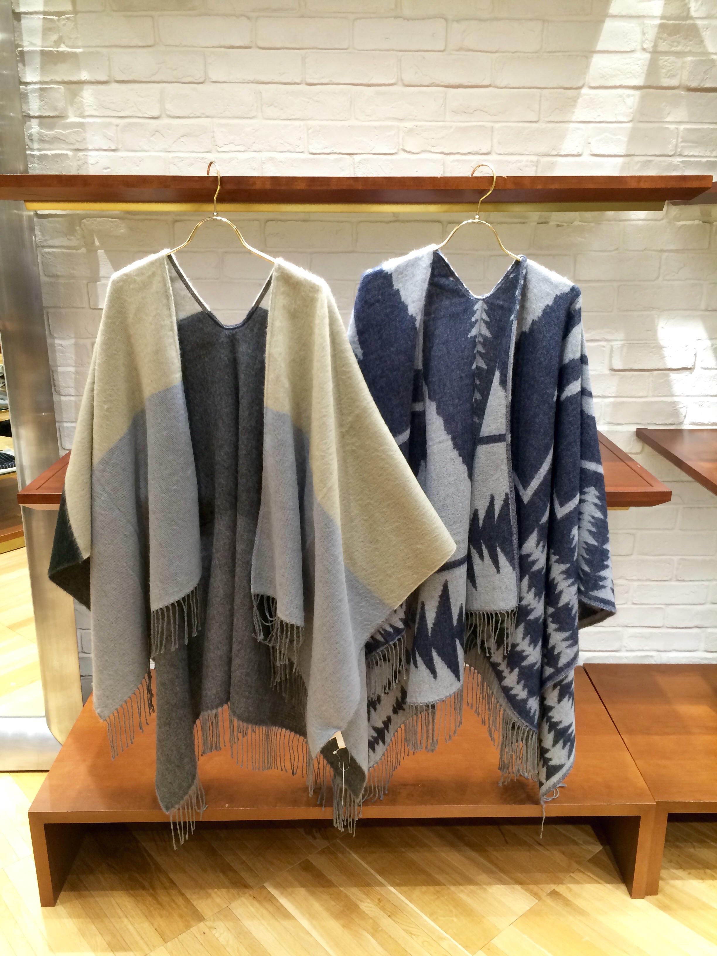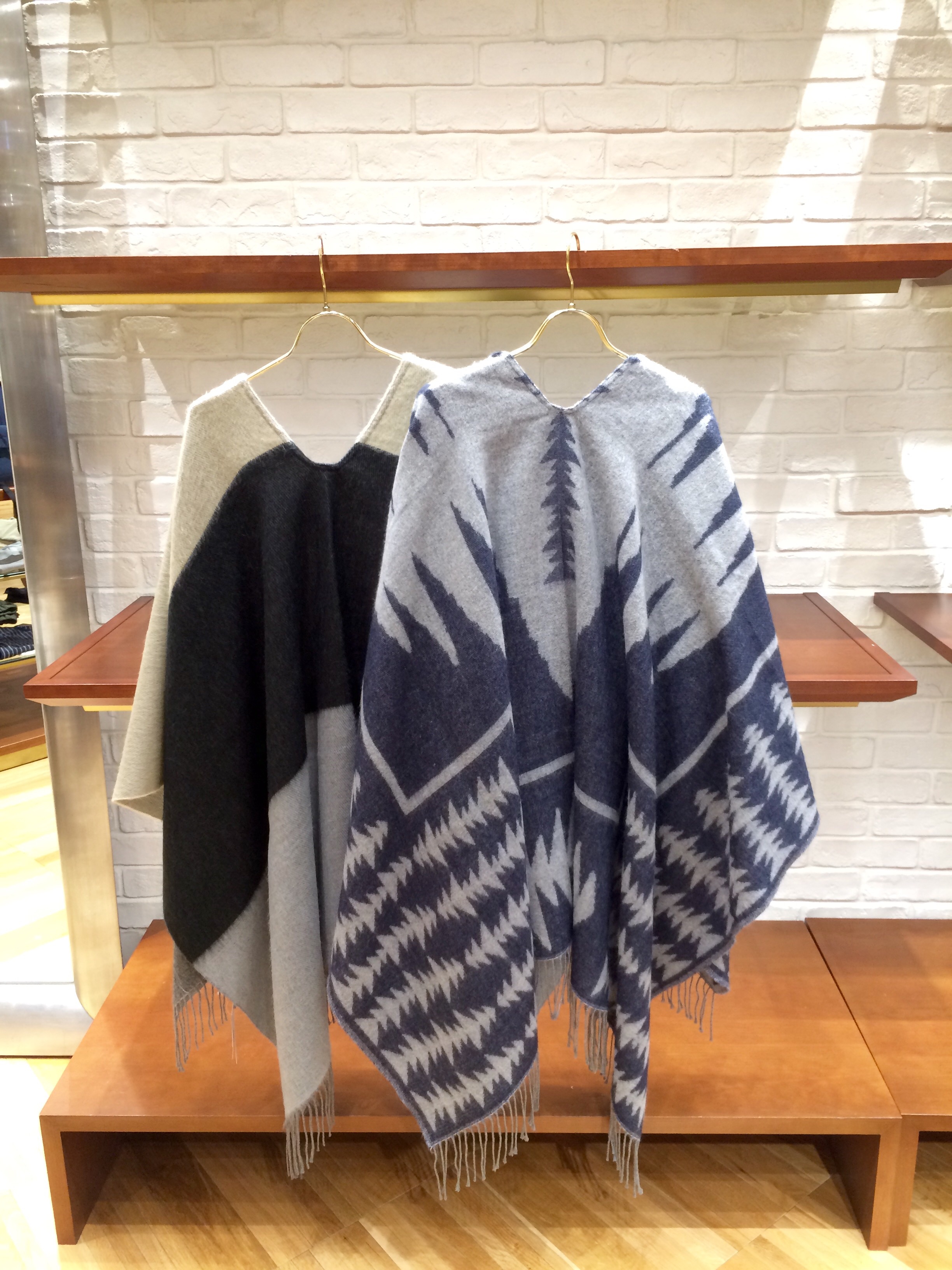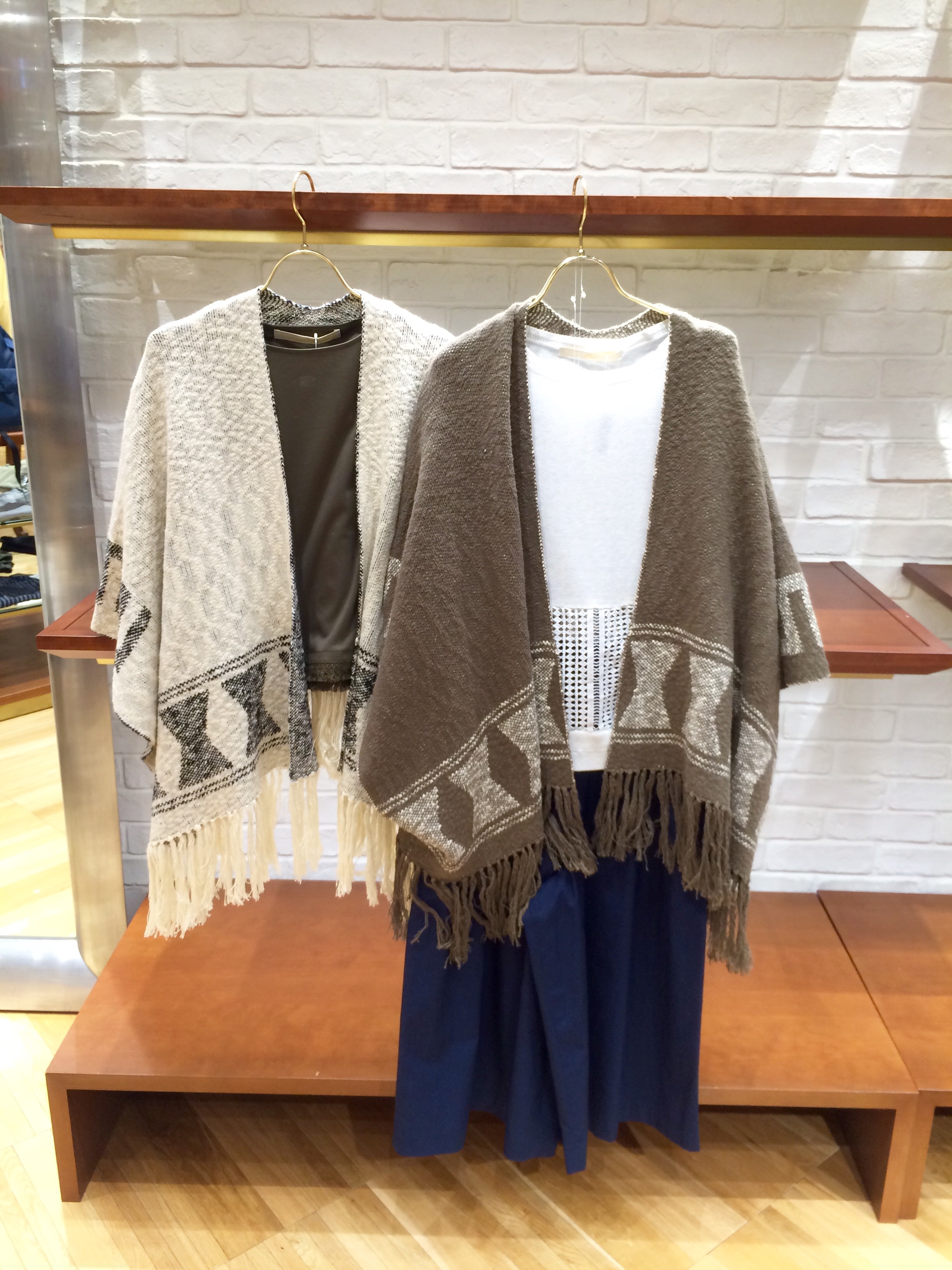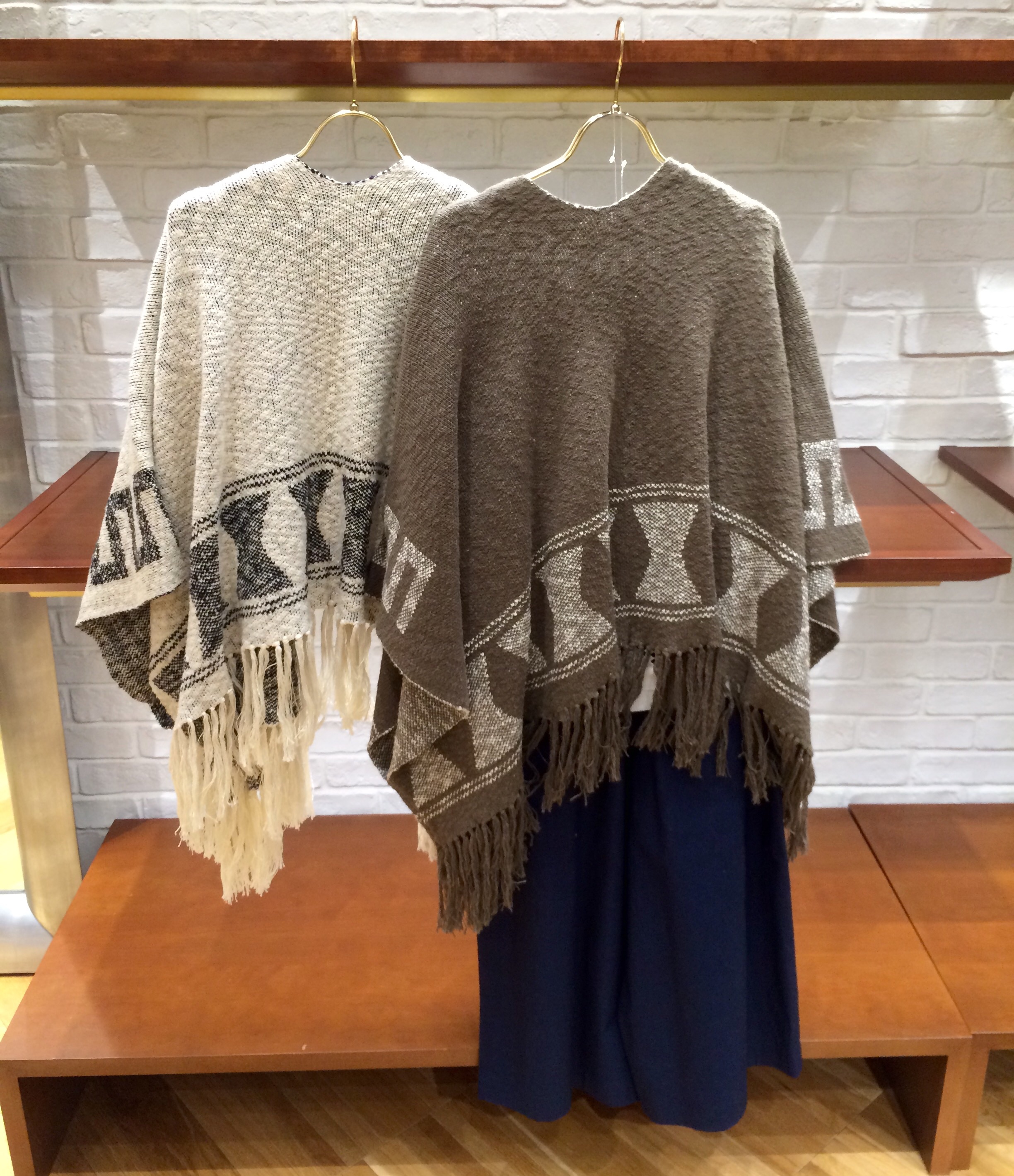 Khaju 左:328-24-0043 ¥8.000(+TAX) 右:328-24-0044 ¥9.000(+TAX) こちらのポンチョはボリューム感があります。 柄もモノトーンな2色使いなのでいろいろと合わせやすそうで素敵です!