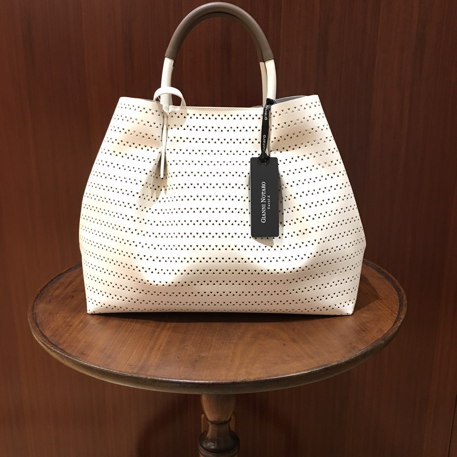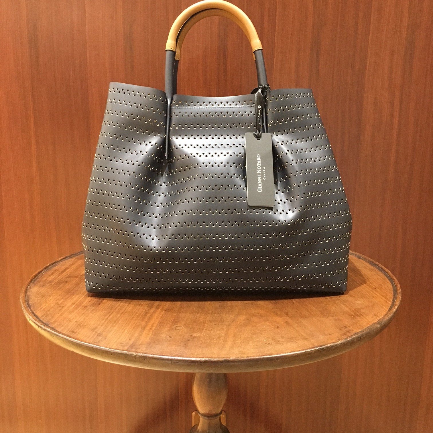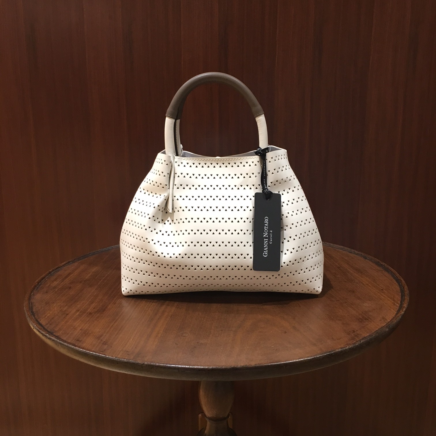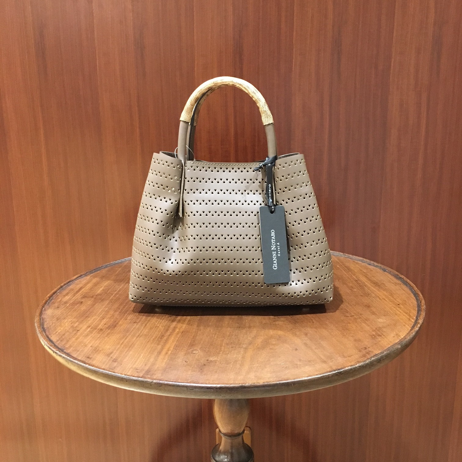 パンチングレザーを使用した軽やかな印象のレザートートタイプ。春らしい素材感です。