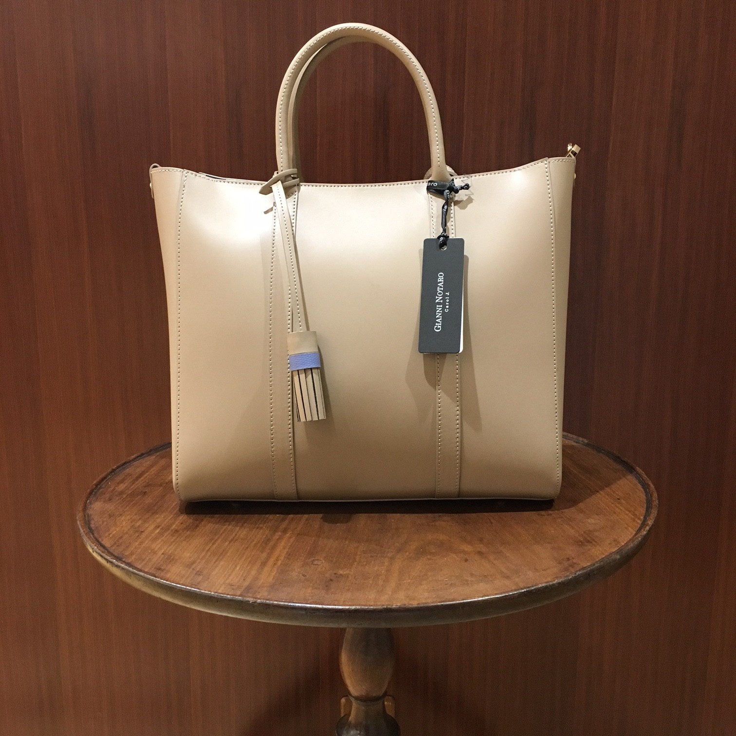 A4サイズがしっかり入るシンプルながらもレザーの雰囲気、タッセルのワンポイントがかわいいタイプです。通勤にぴったりです。