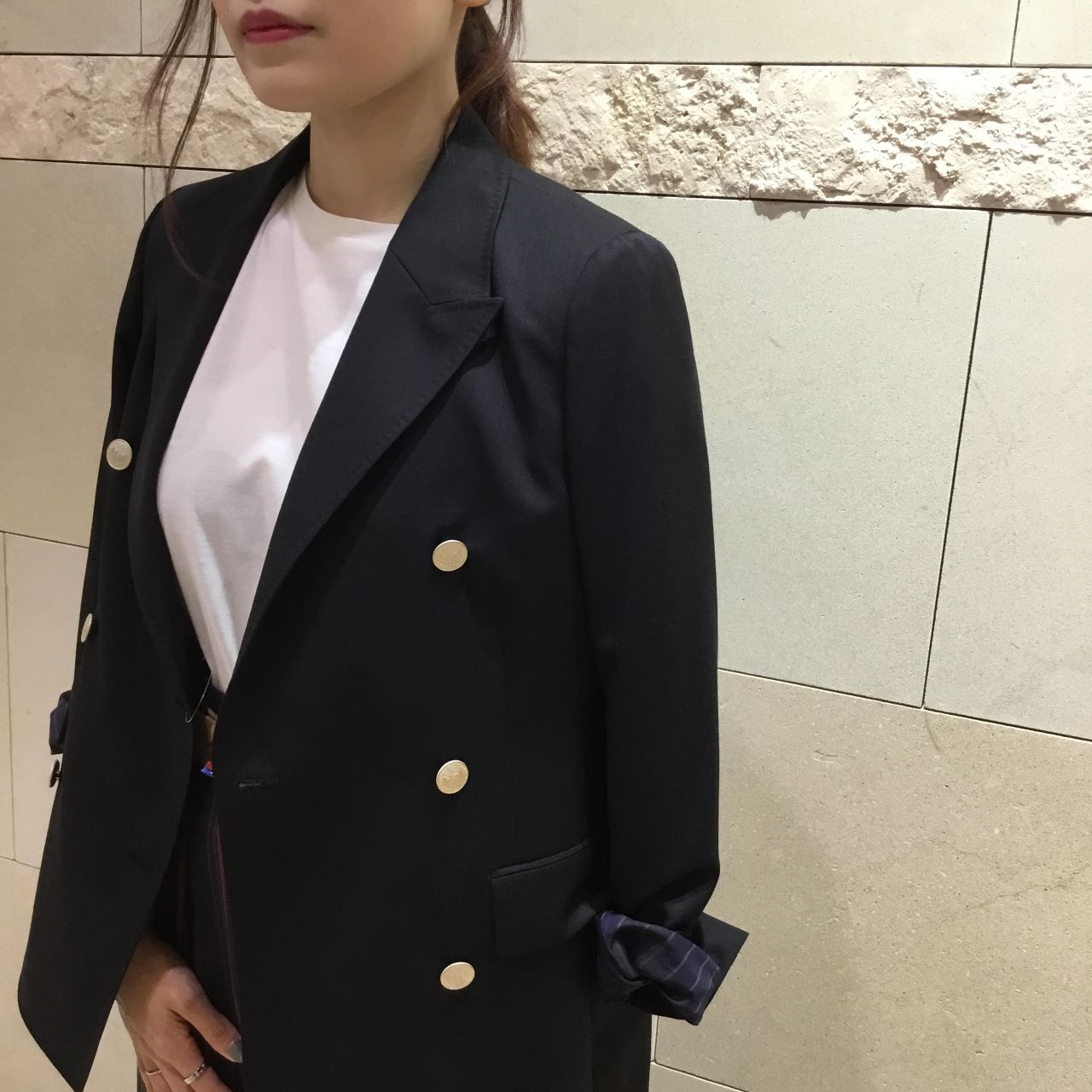 ダブルのジャケットを合わせて