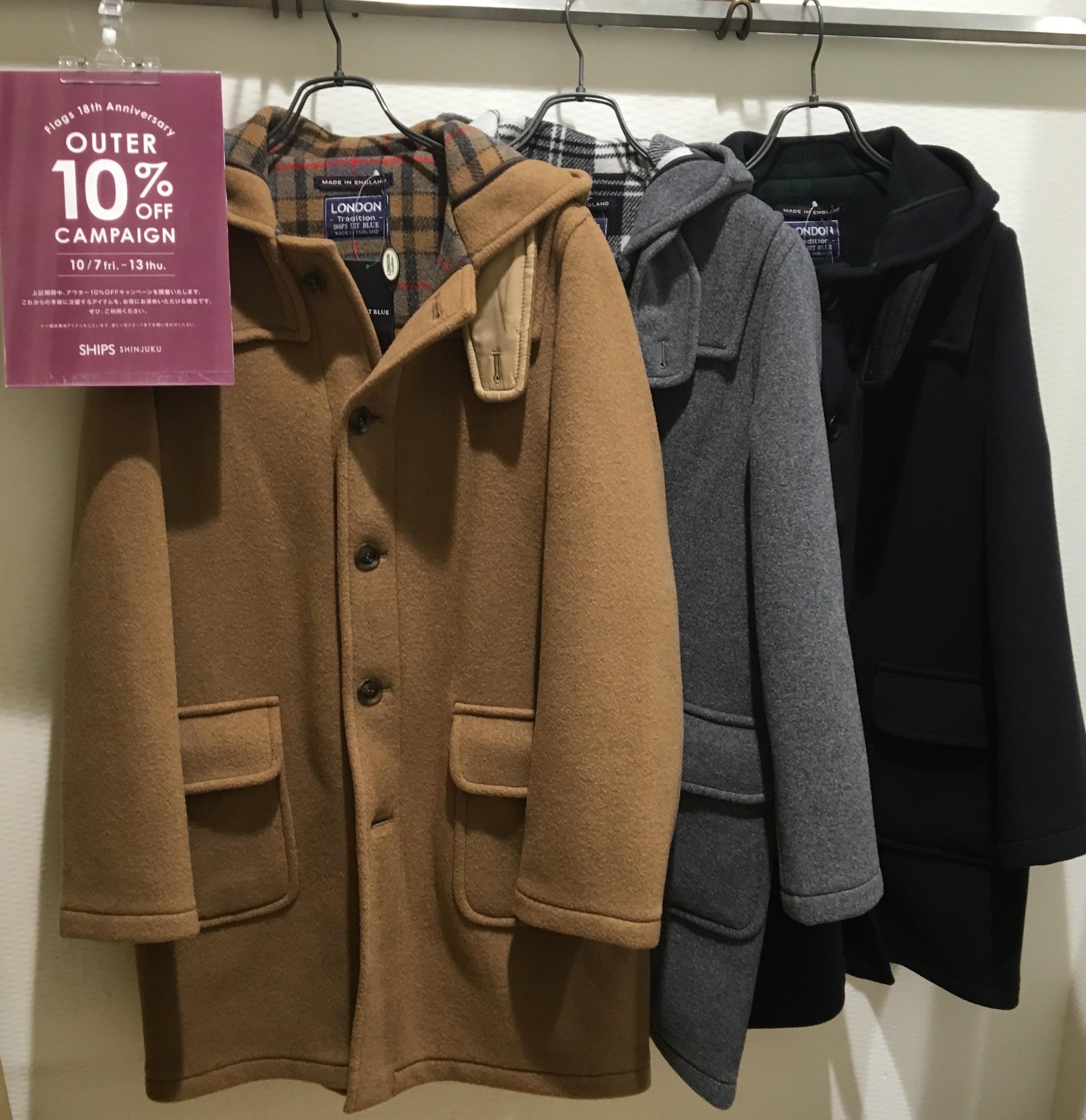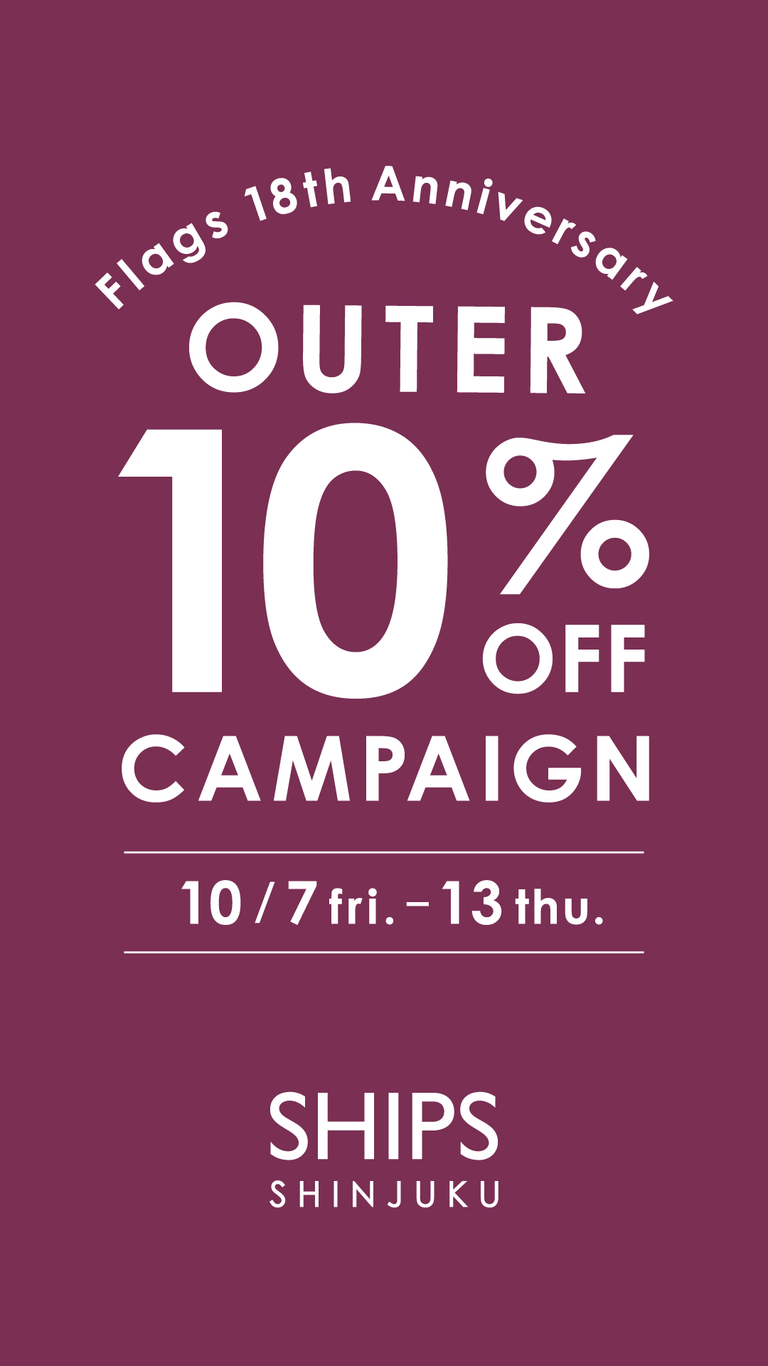 フラッグス18周年!のお祝いとして10/7(金)~13(木)までアウター10%OFFキャンペーンを開催致します!