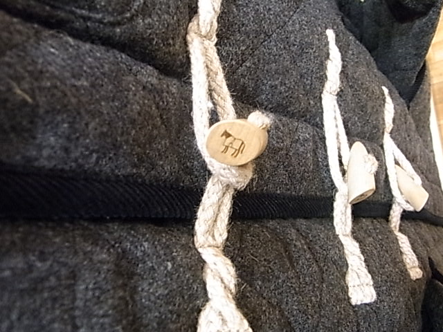 トグルには隠れミッ〇ー的なブランドロゴ。この形ならではの仕様です。 着ていくうちに次第に変化の出てくるこのアイテム、お見逃し無く!! 週末にかけてさらに入荷があります!随時このブログでお届けできるよう頑張ります! 週末は、