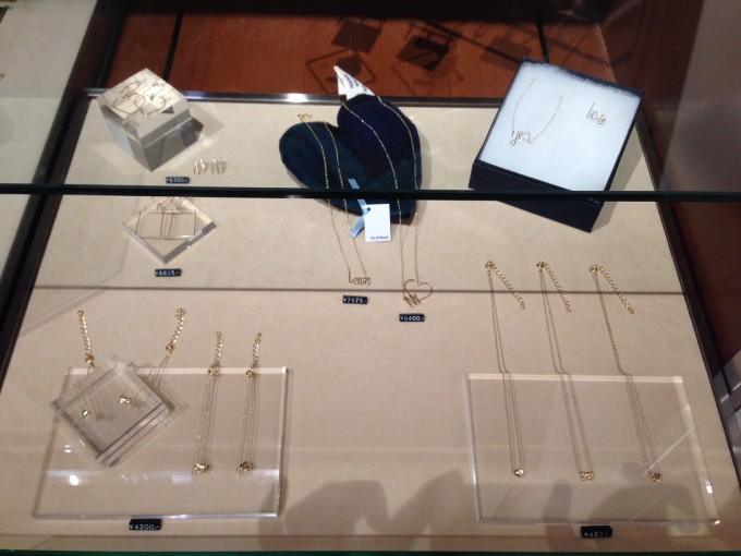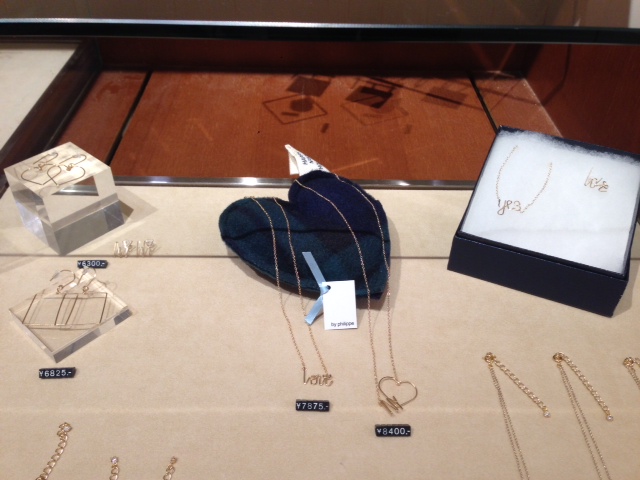 ●中央 Love ロゴネックレス ¥7875- ♥NYロゴネックレス ¥8400- ●左(上から) ハートピアス ¥6300- NYピアス ¥6300- サークルピアス ¥6825- ●右(左から) Yes ネックレス ¥7875- Loveネックレス ¥6300-