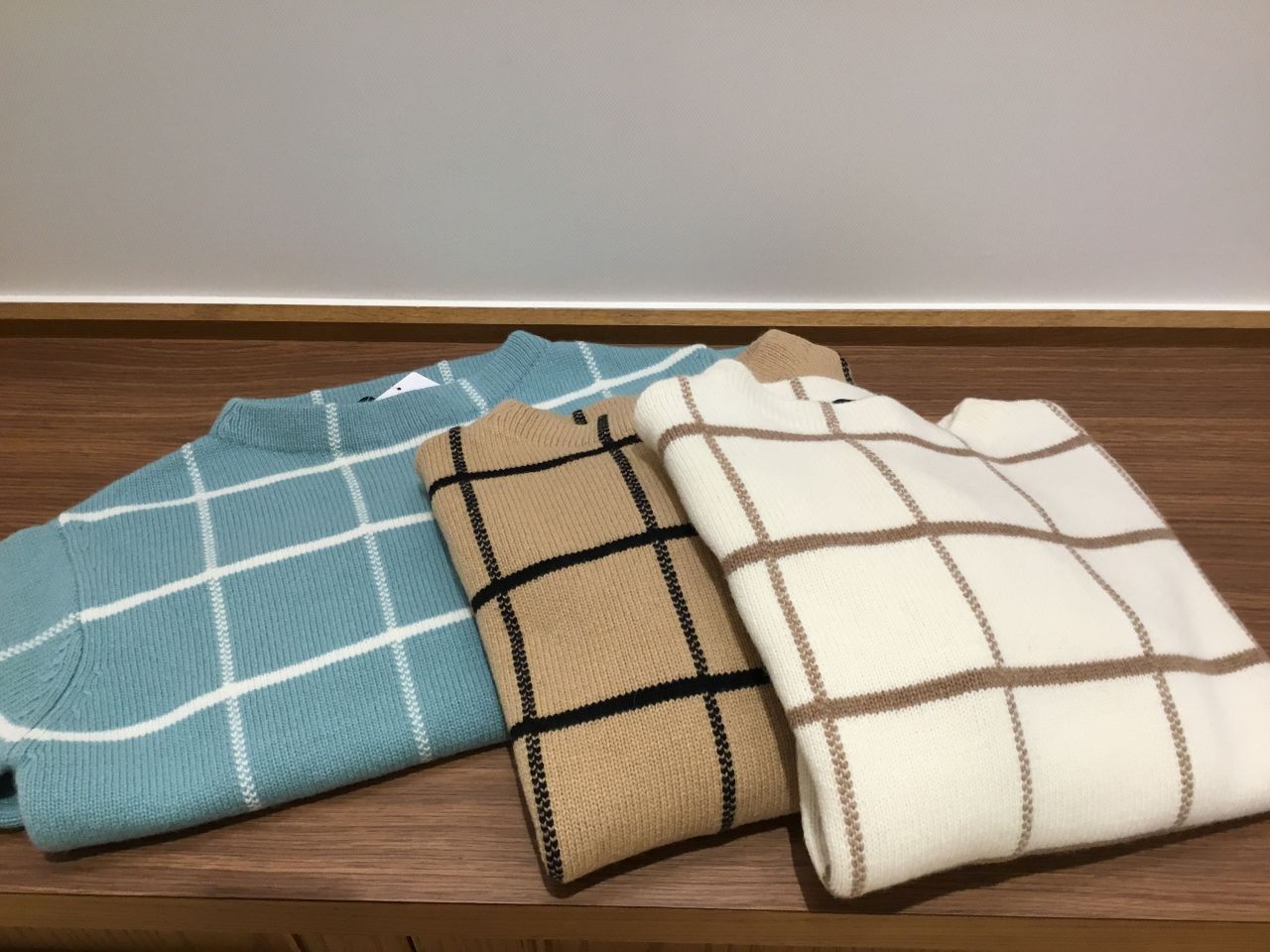 チェックハイネックニット