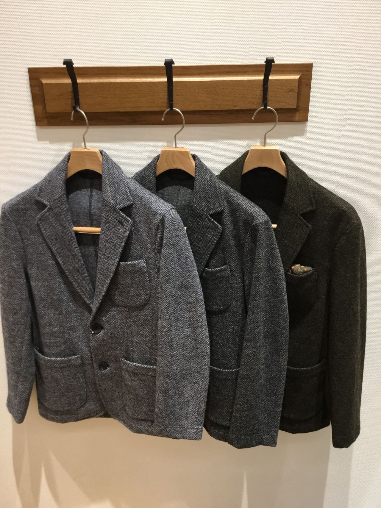 ヘリンボーンツイードジャケット(一番右の緑、カッコいいです)