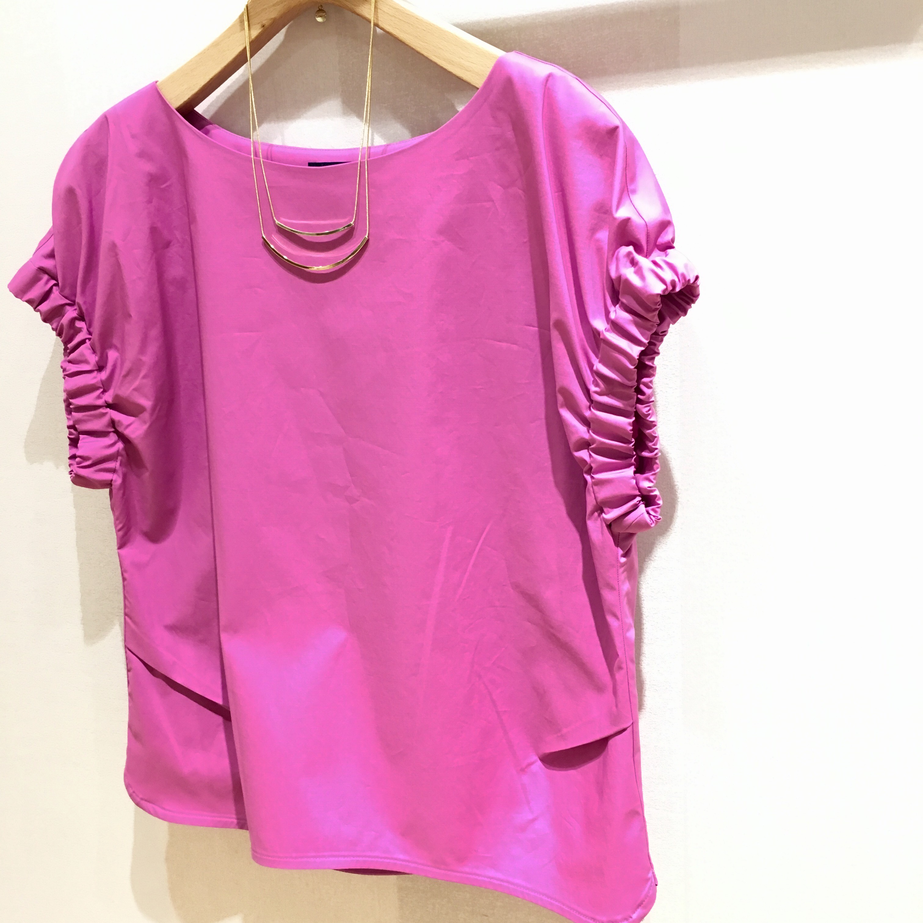 ピンクと白地にストライプの春夏らしい色味が鮮やかなノースリーブブラウスです。 袖口にゴムが入っている為、全体的にしまって見えるアイテムとなっております。 身幅は少々広めですがスッキリ感を演出できます。