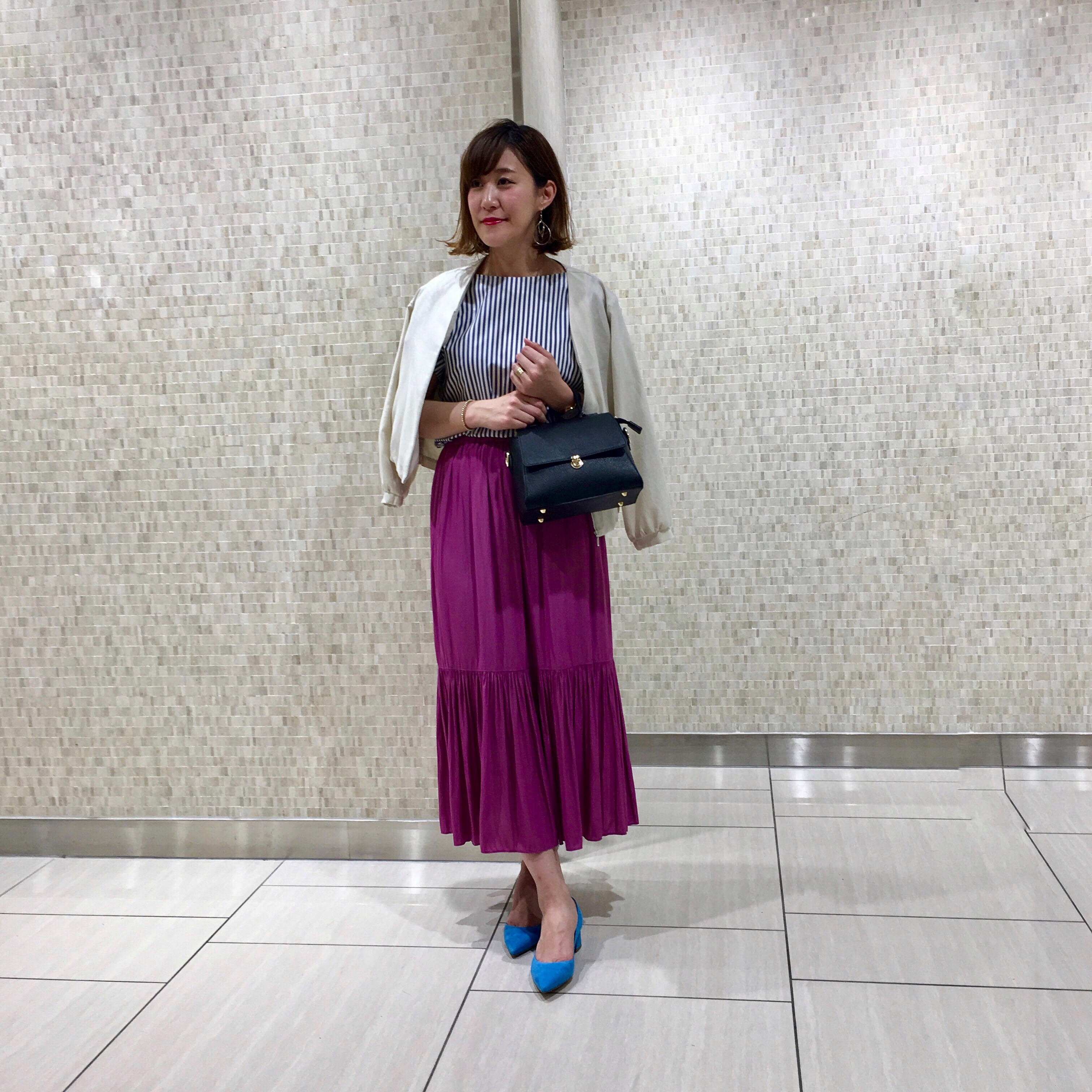 店内も徐々に夏仕様に変わっていっております。 こちらはメンズの夏向けジャケットを着た、大人のリゾート感溢れるスタイリング。