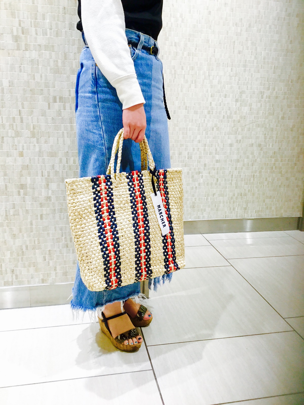310-01-2161 MARCHER:ABACA TOTE ¥12,000(+TAX) MARCHE(マルシェ)・・・日本初上陸のバックブランド。 アバカで出来たフィリピン製。目を惹かれる縦ラインのデザインが印象的。 IMG_0641