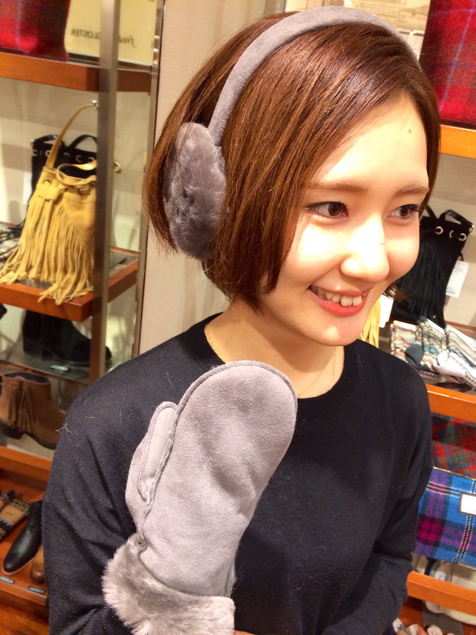 お次はこちらのムートンの手袋とイヤーマフ。