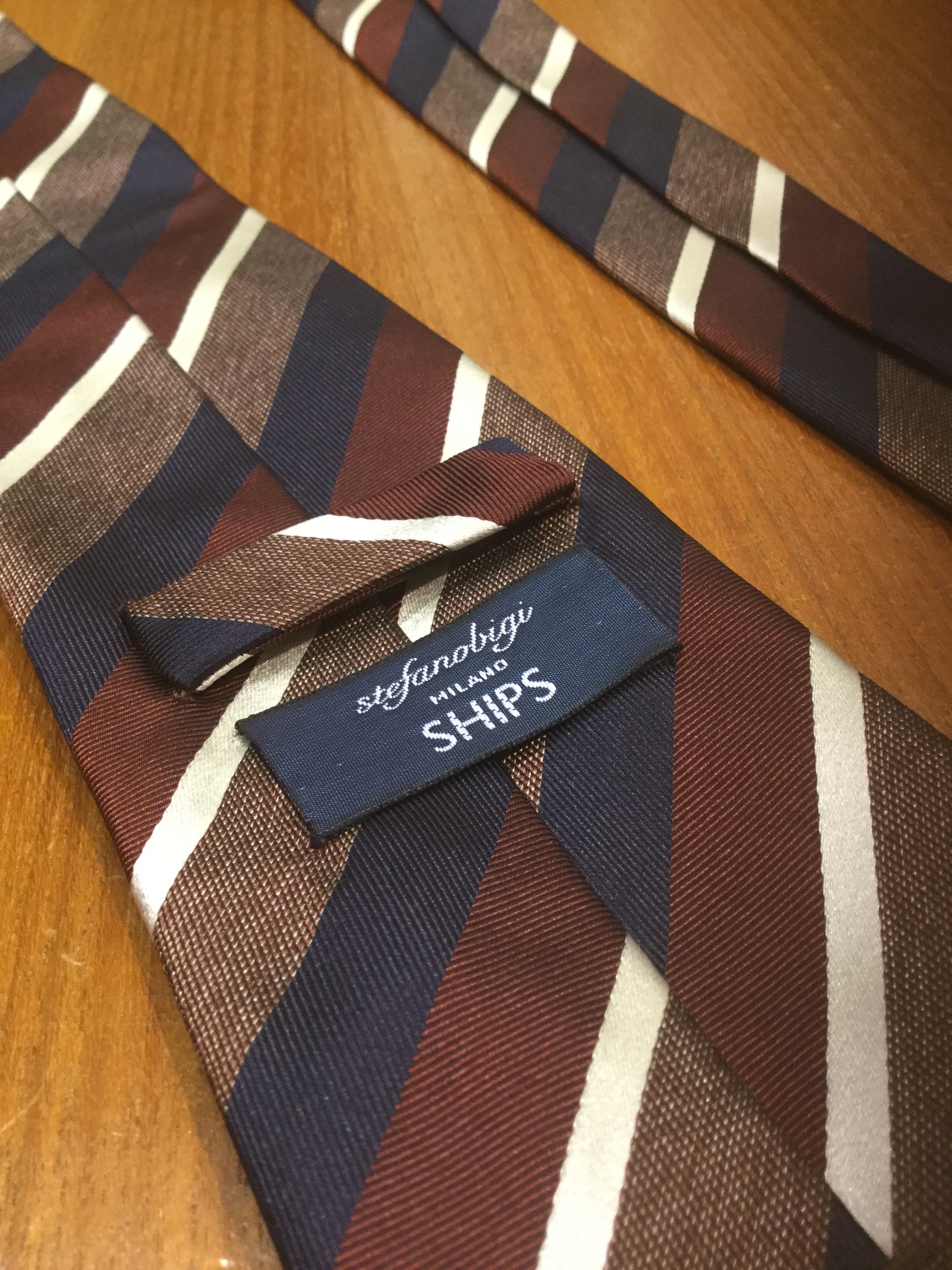 そんなstefanobigiのネクタイでも今回ご紹介するのは、SHIPSネームの入った特別なタイ。