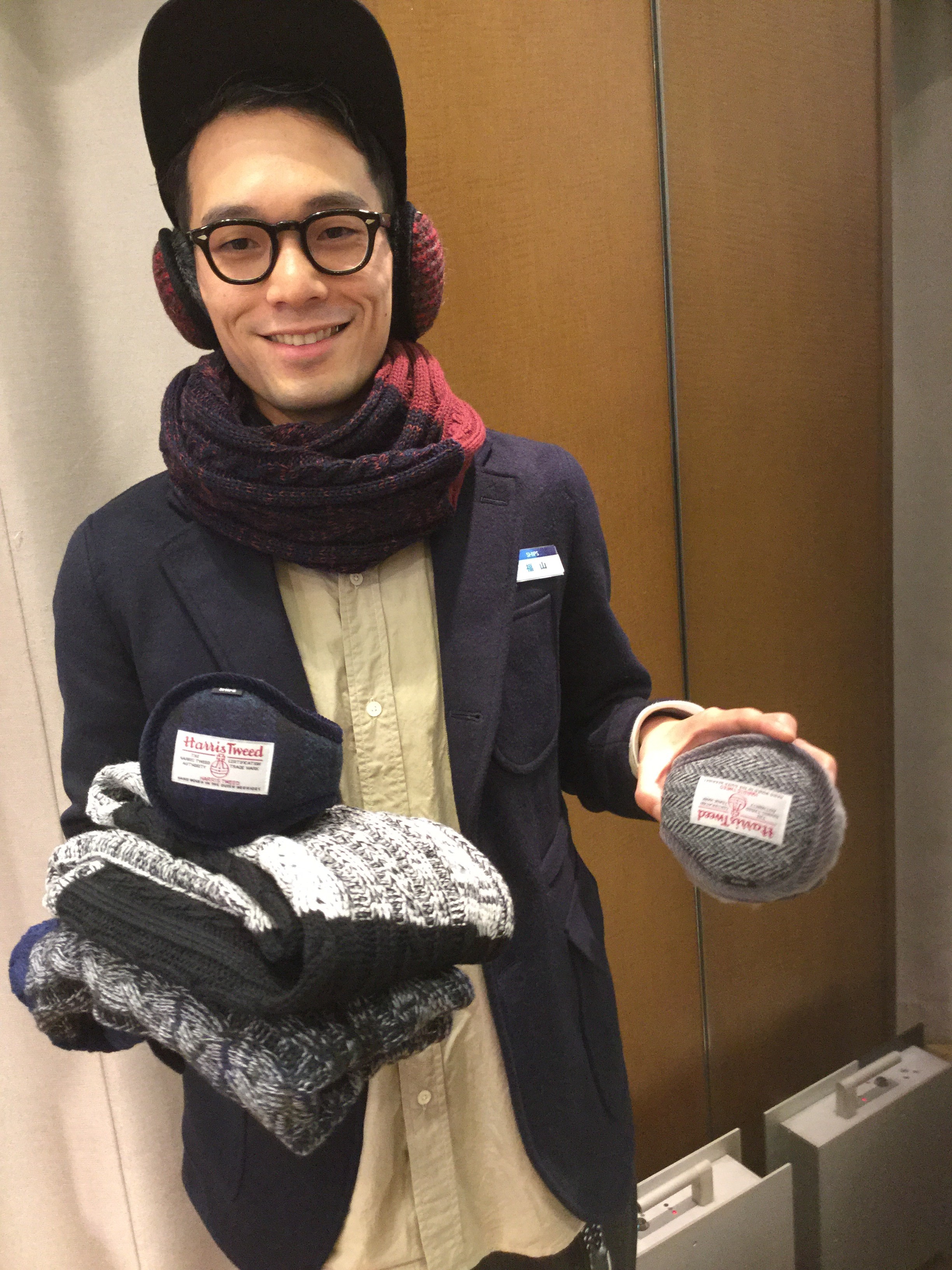 「今期はイヤーマフとスヌードを豊富に取り揃えておりますので是非!!」 とスタッフ福山。