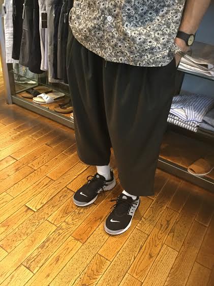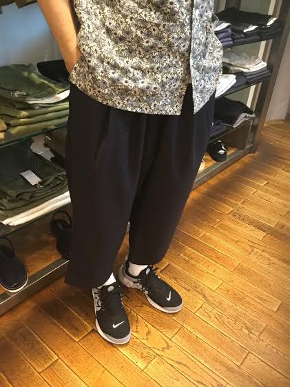 横山さん「通常のガウチョパンツにも見られるリラックス感、さらに上品な光沢感が出るT/R素材(テトロンとレーヨンの混紡素材)を使っているため他のブランドのものとは違った雰囲気が出ます!」
