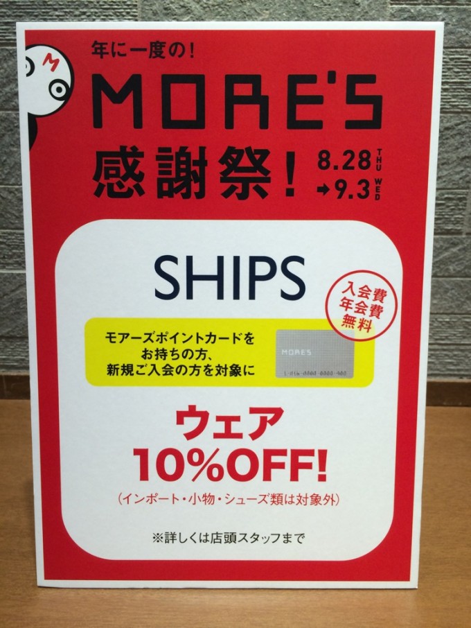 MORE'S感謝祭 ウエア10%OFF実施中!!(MORE'Sカードお持ちの方対象)