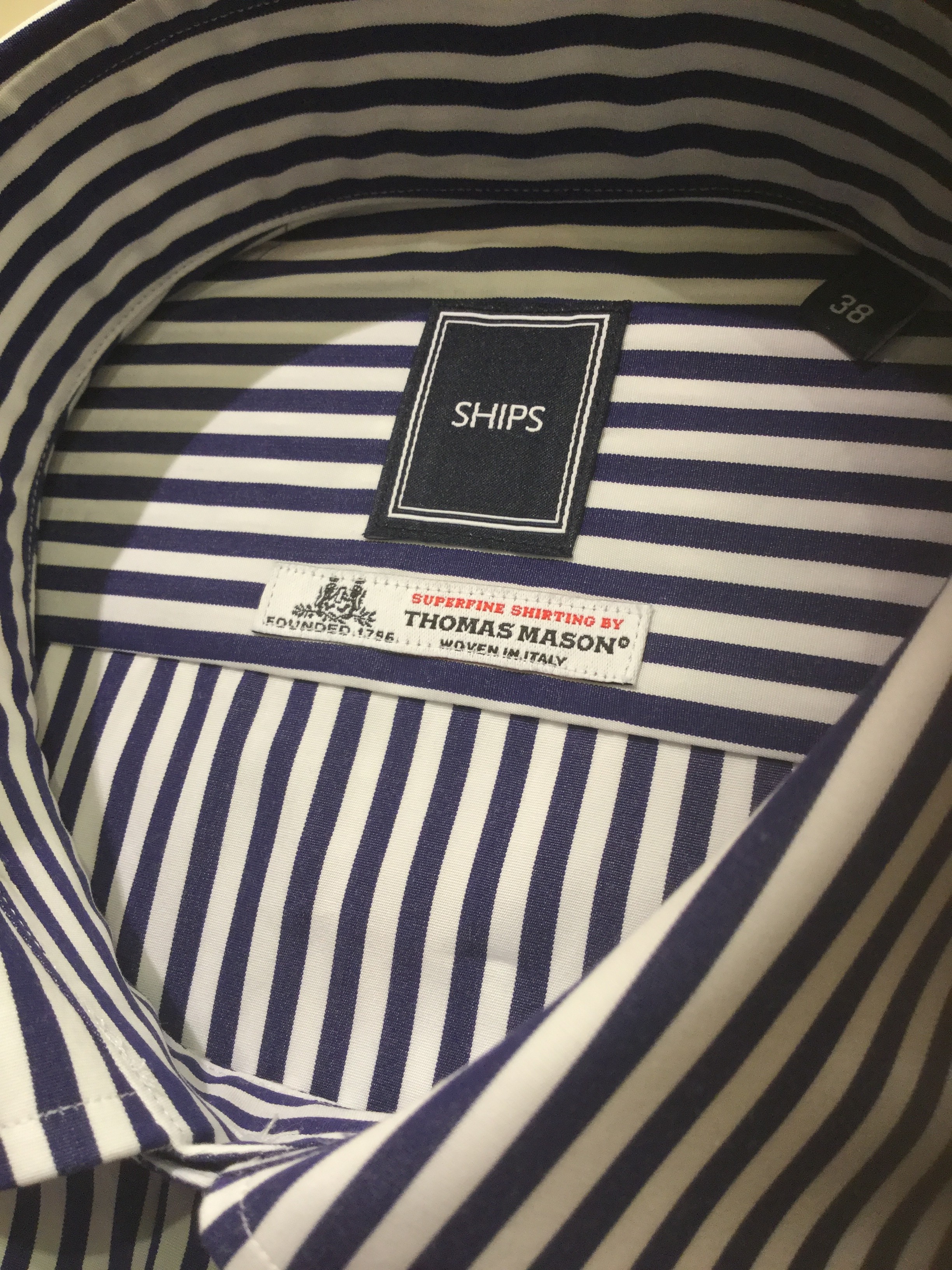 【THOMAS MASON(トーマスメイソン)】   1796年に英国ランカシャーで設立されたトーマスメイソン。   英国王家御用達のシャツ生地メーカーとして有名。   また、某ハイグレードブランド御用達のシャツ生地メーカーとしても名を馳せるブランドなんです。   現在は上記の通り、ALBINIの傘下となりましたが、   英国テイストを強く残し、糸質やデザインをALBINIとは別に構築されています。   そんなトーマスメイソンの生地をSHIPSではなんと、